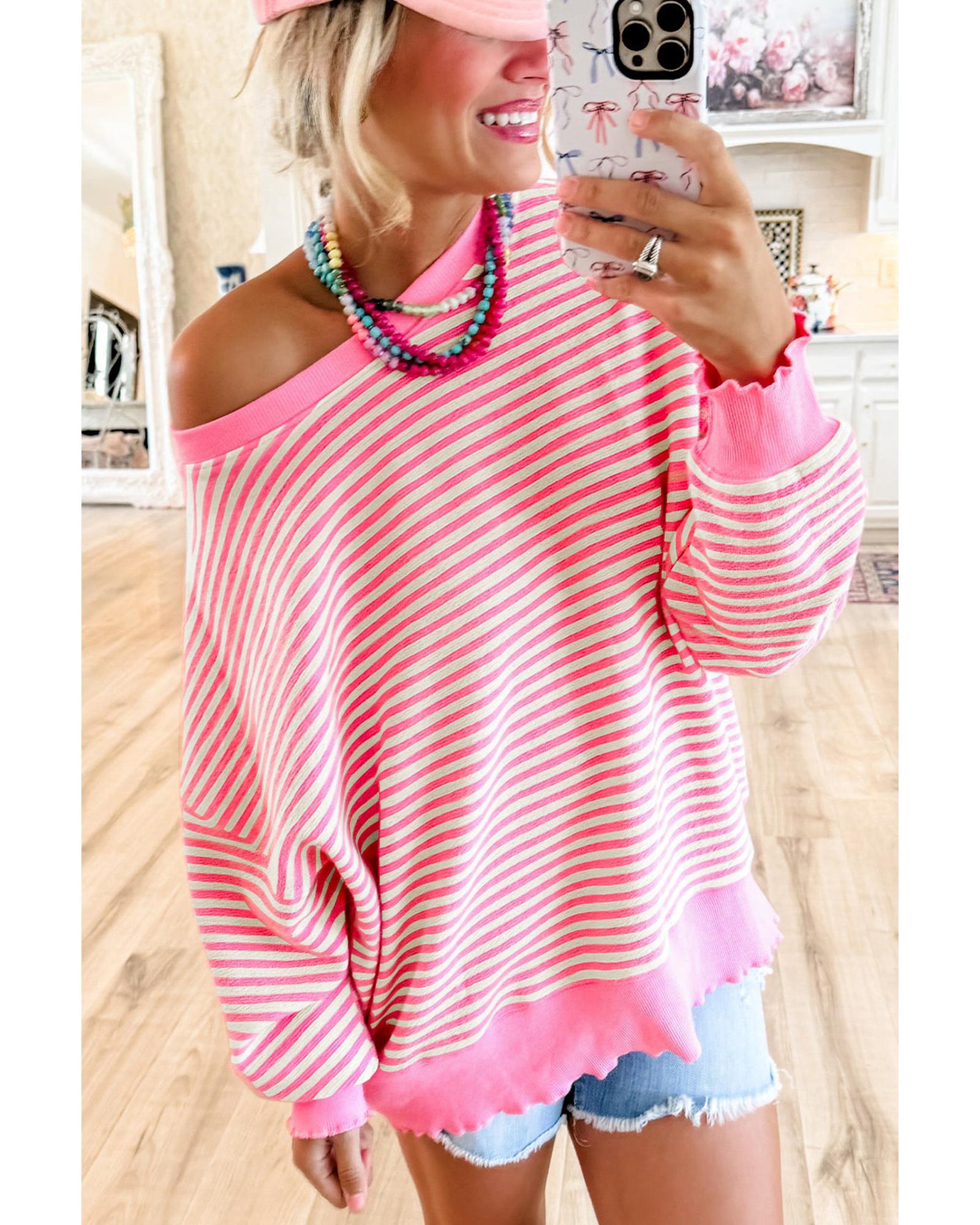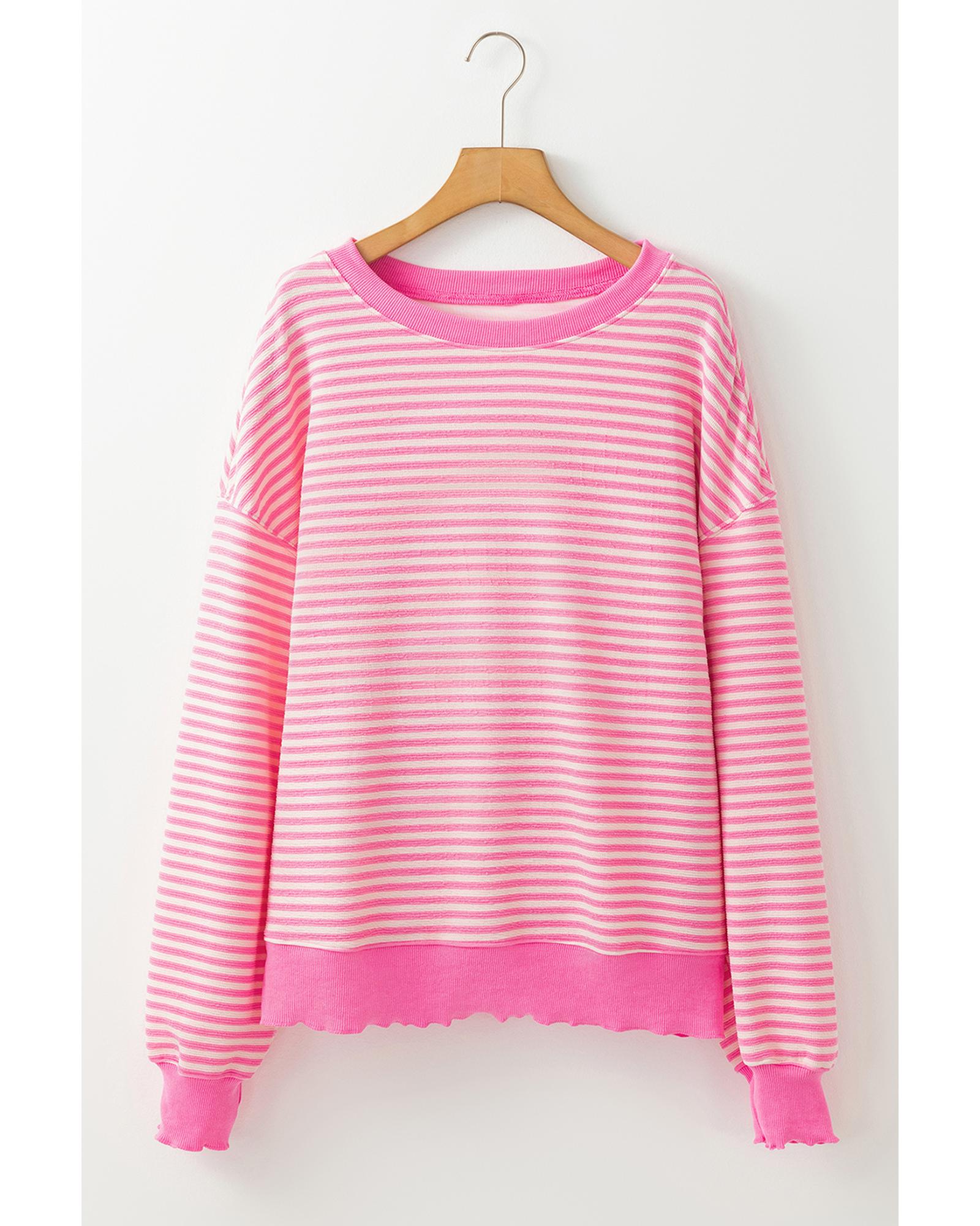 Azura Exchange Pink Stripe Loose Drop Shoulder Long Sleeve Top – XL