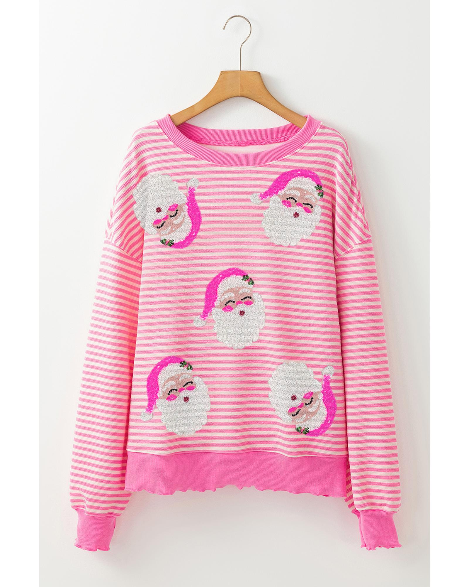 Azura Exchange Pink Stripe Santa Clause Print Drop Shoulder Long Sleeve Loose Top – L