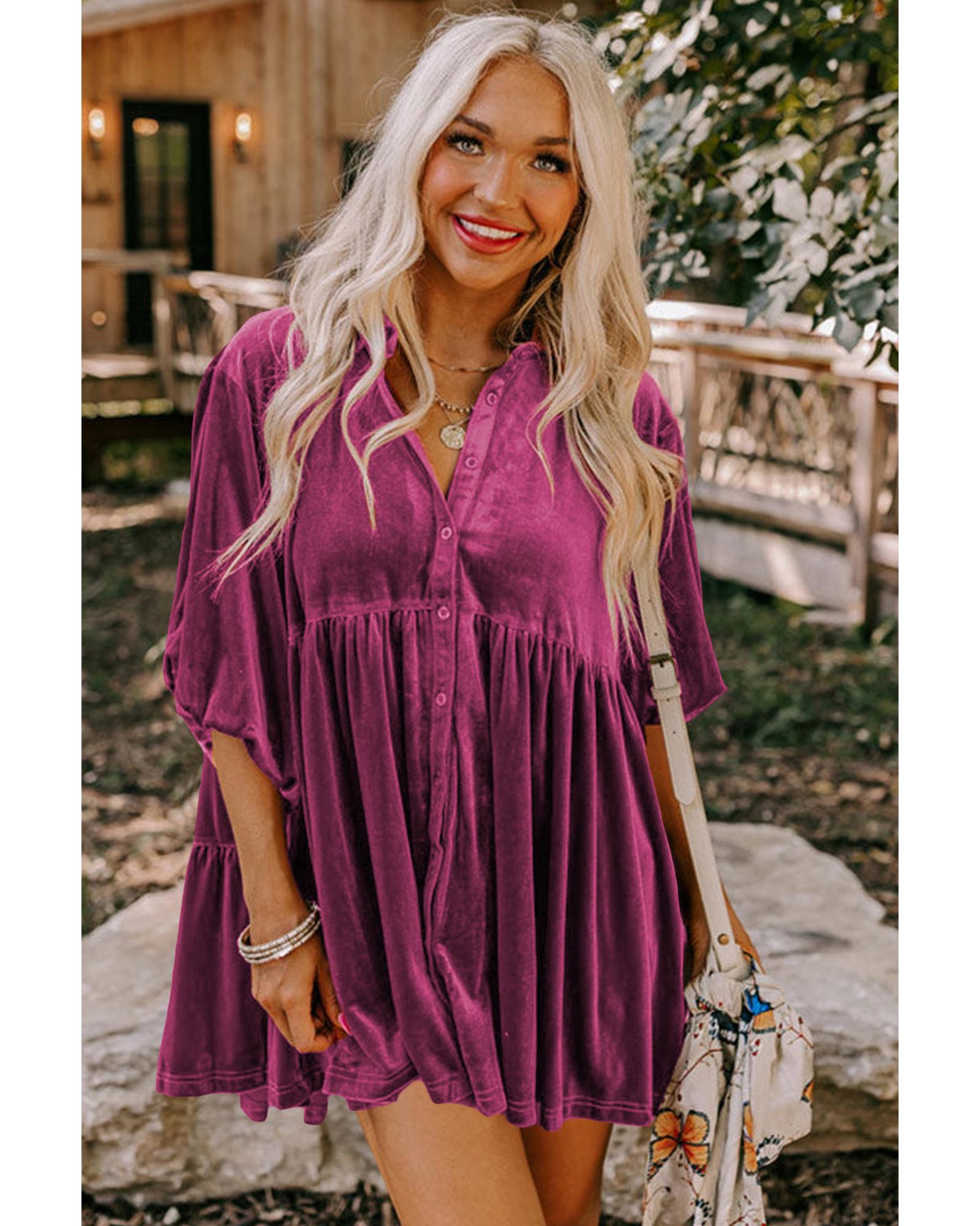 Azura Exchange Pitaya Pink 3/4 Sleeve Tunic Babydoll Velvet Shirt – XL