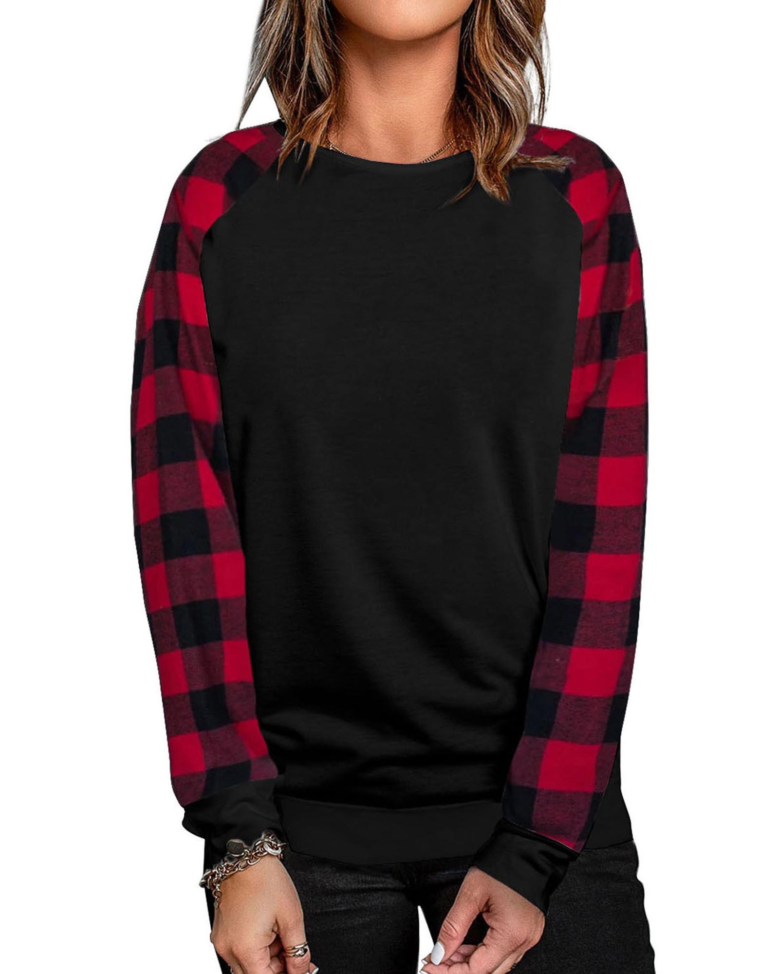 - Stylish and comfortable Buffalo Plaid Long Sleeve Sweatshirt