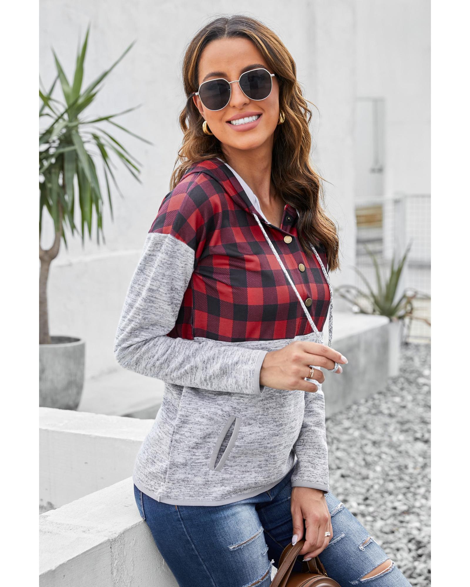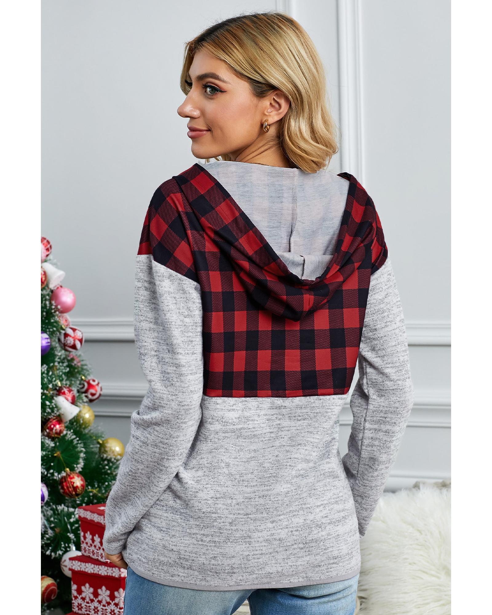 Azura Exchange Plaid Splicing Pocketed Hoodie – L