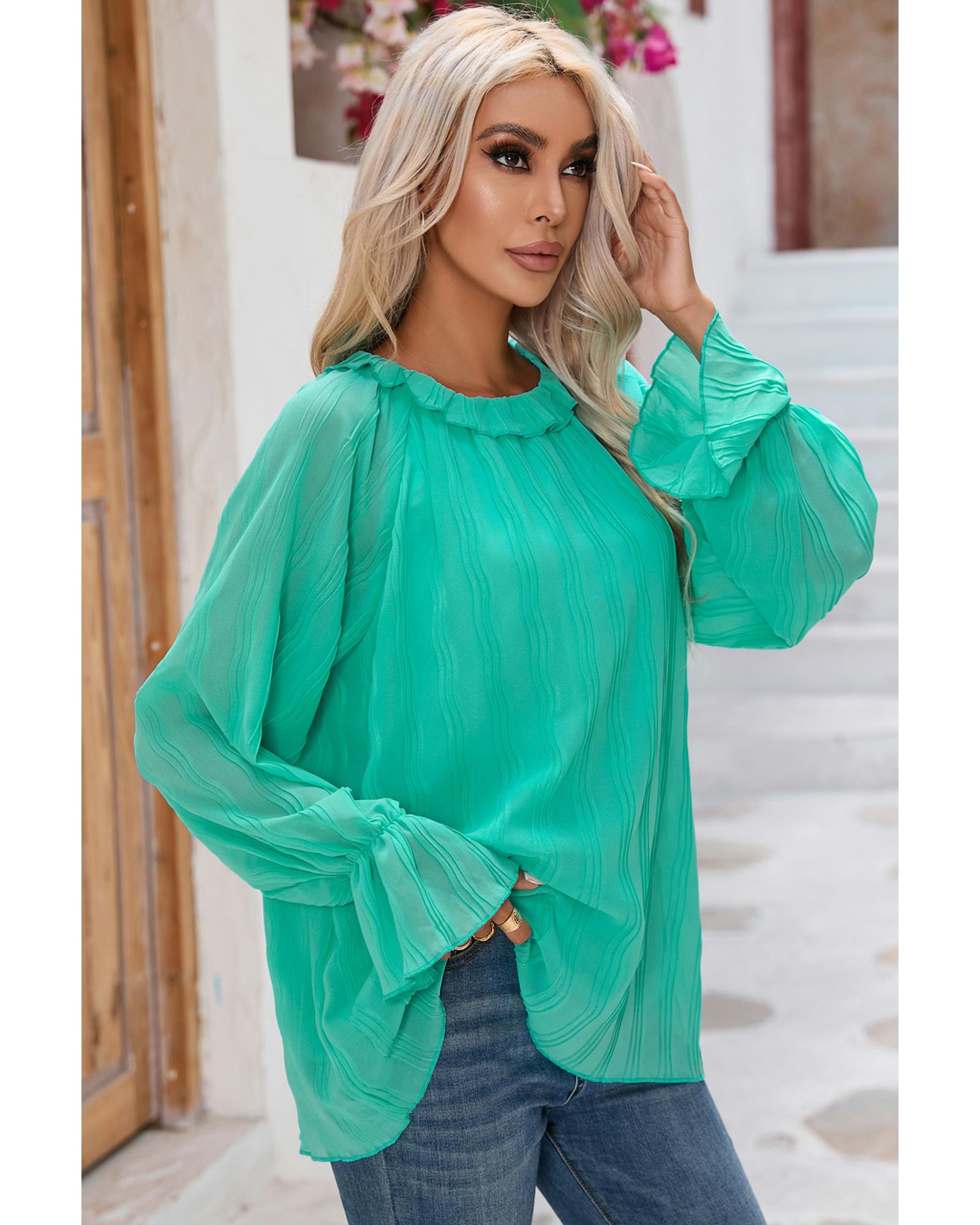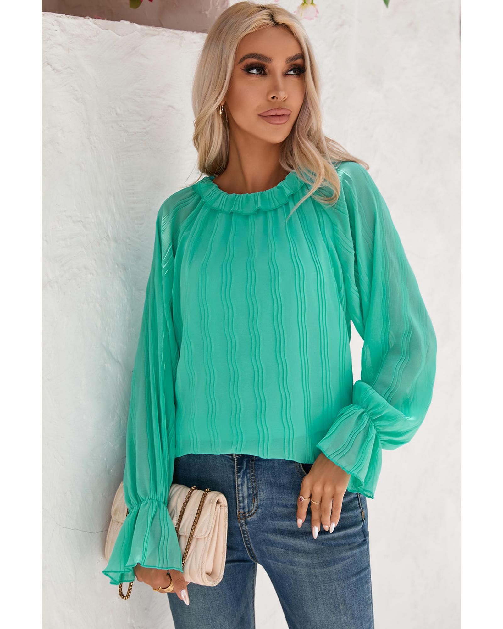- Luxurious Striking Pleated Flared Cuff Long Sleeve Blouse