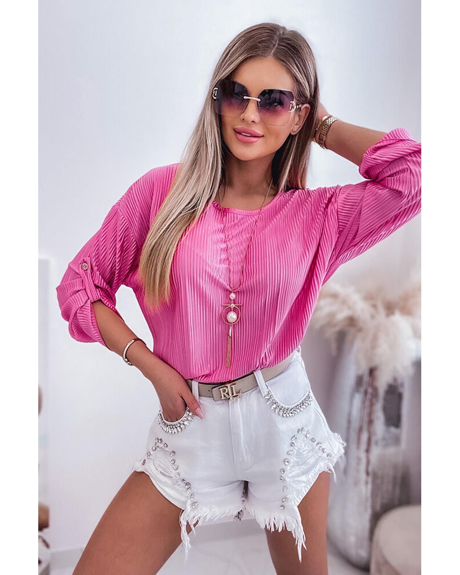 - Versatile and elegant Rose Pleated Texture Roll Tab Sleeve Blouse for women