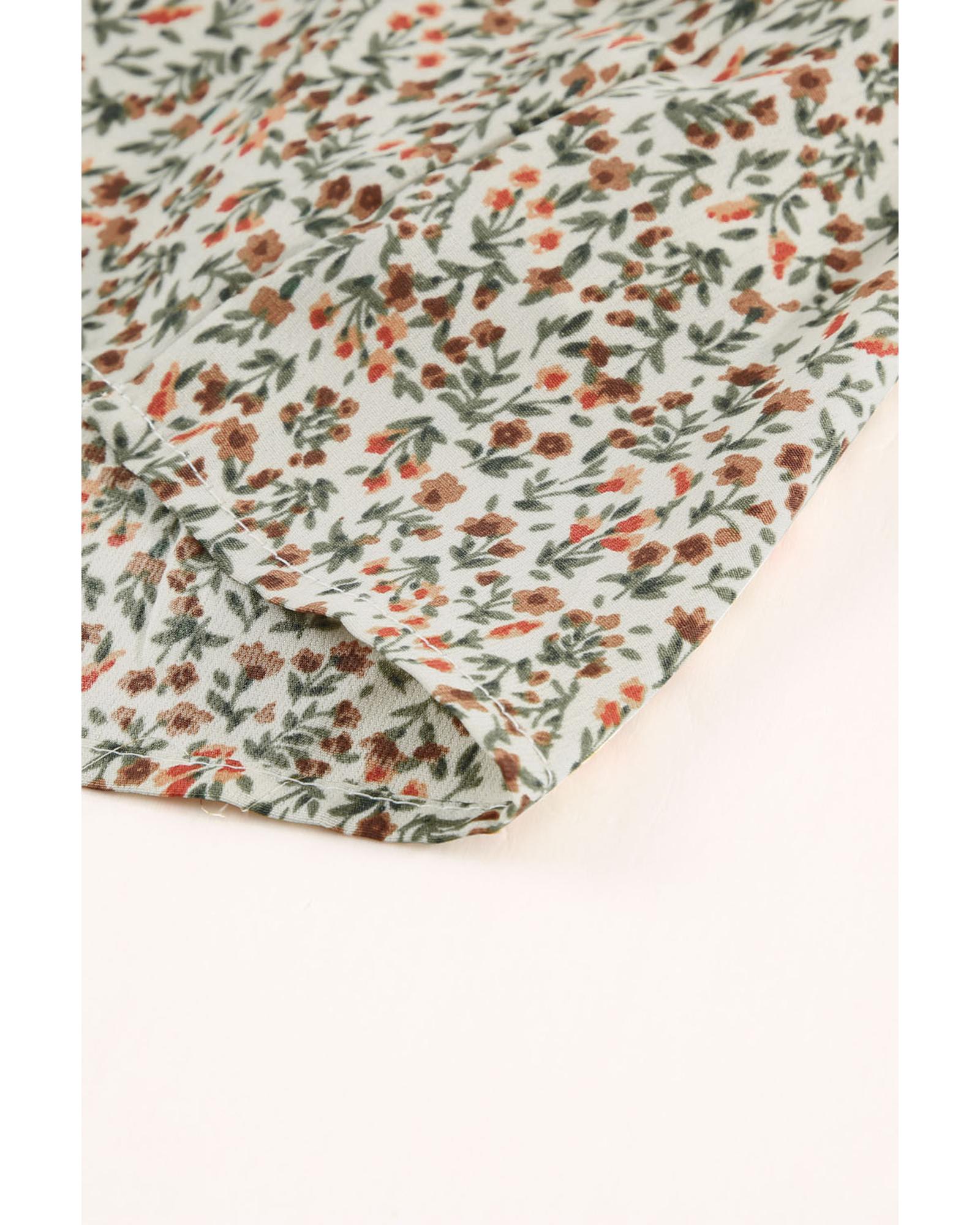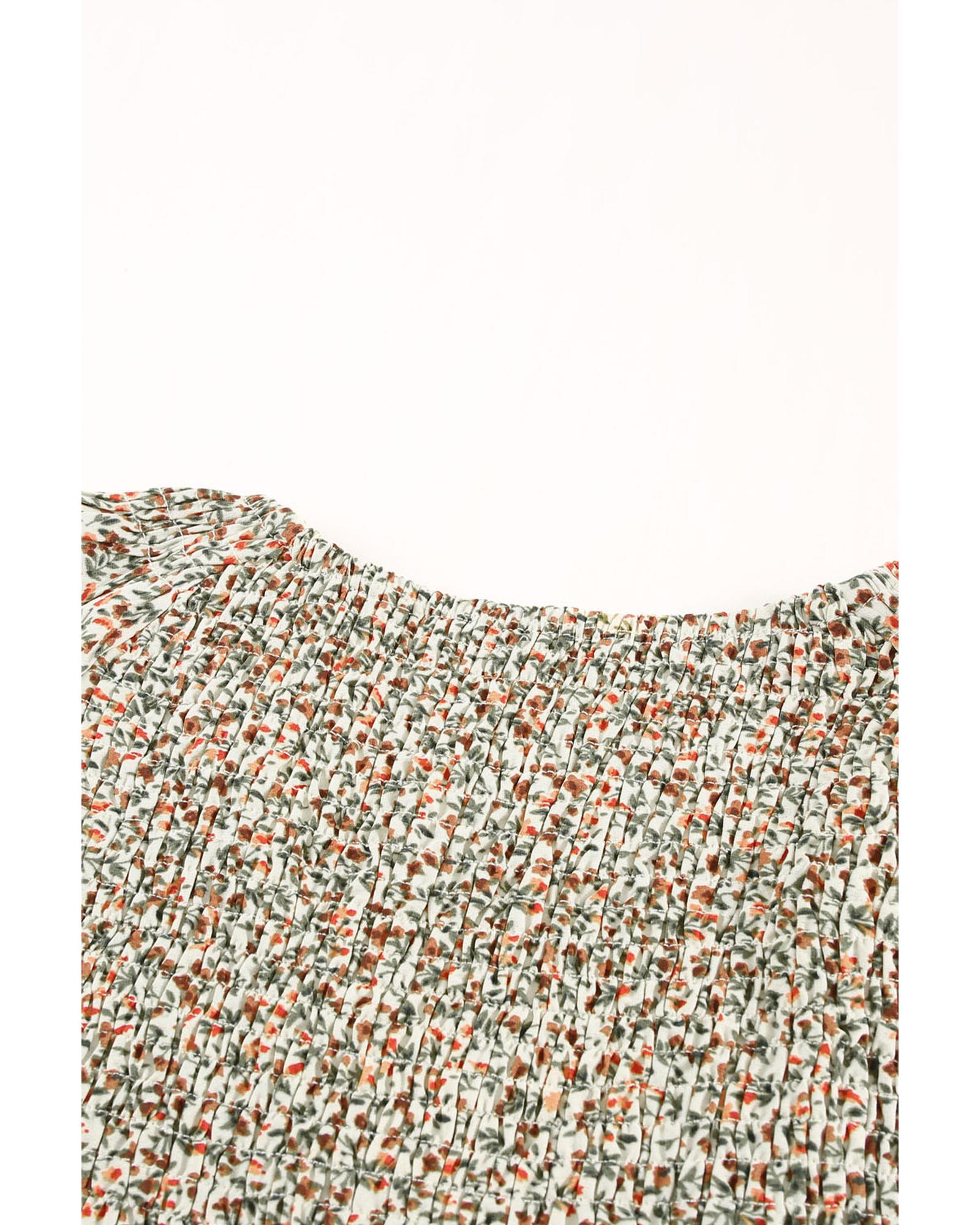 Azura Exchange Puff Sleeve Smocked Top with Floral Print – S