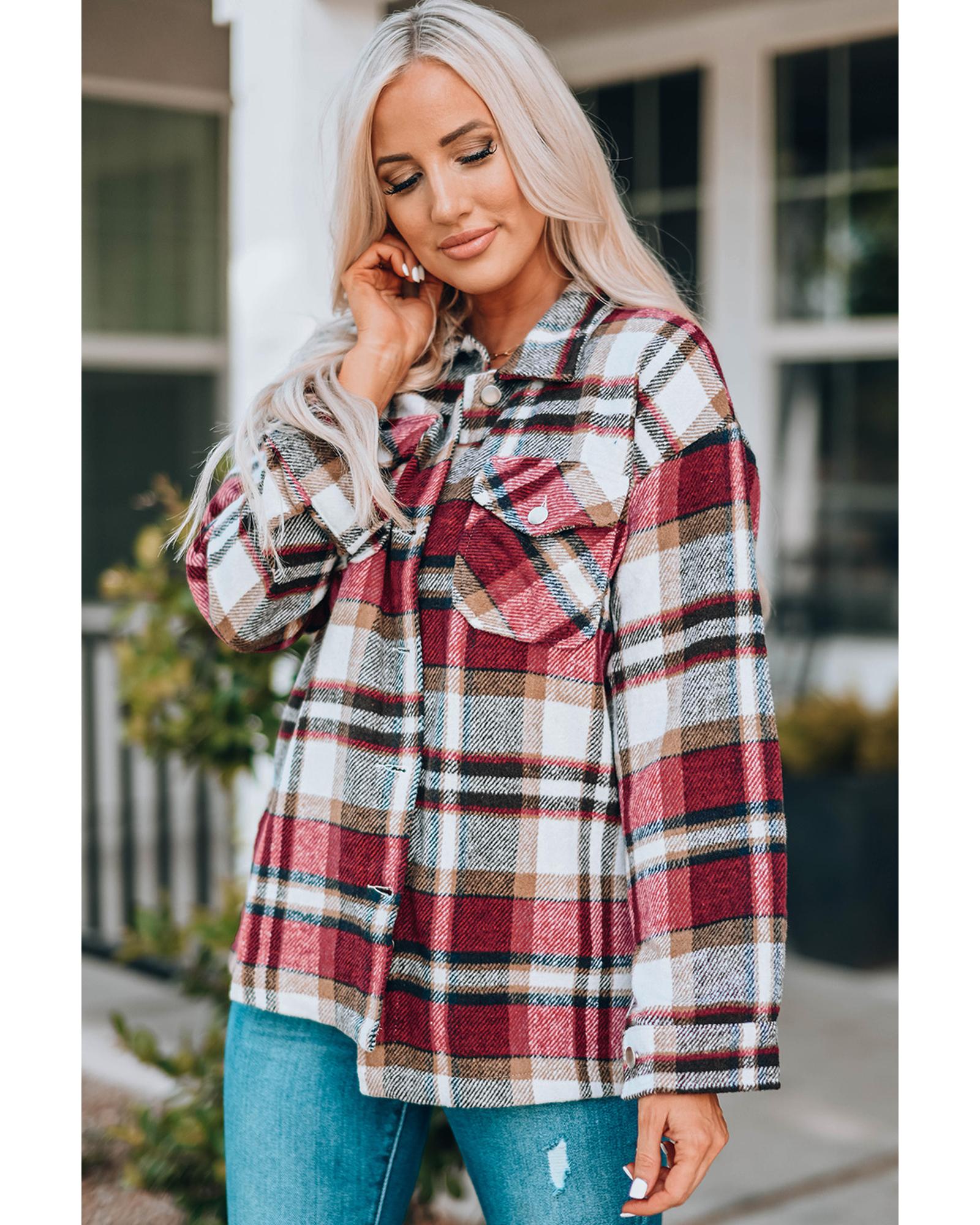 Azura Exchange Red Geometric Plaid Print Pocketed Shacket – S