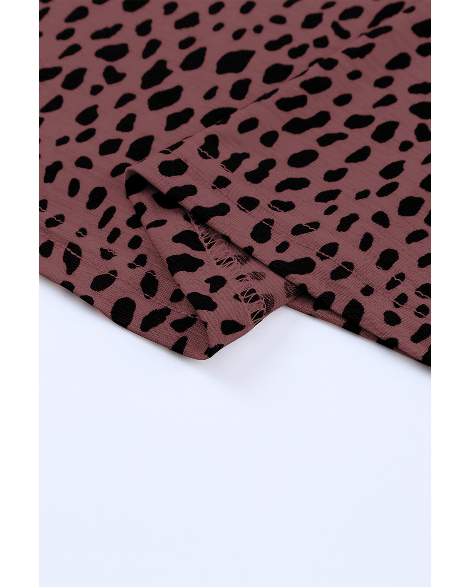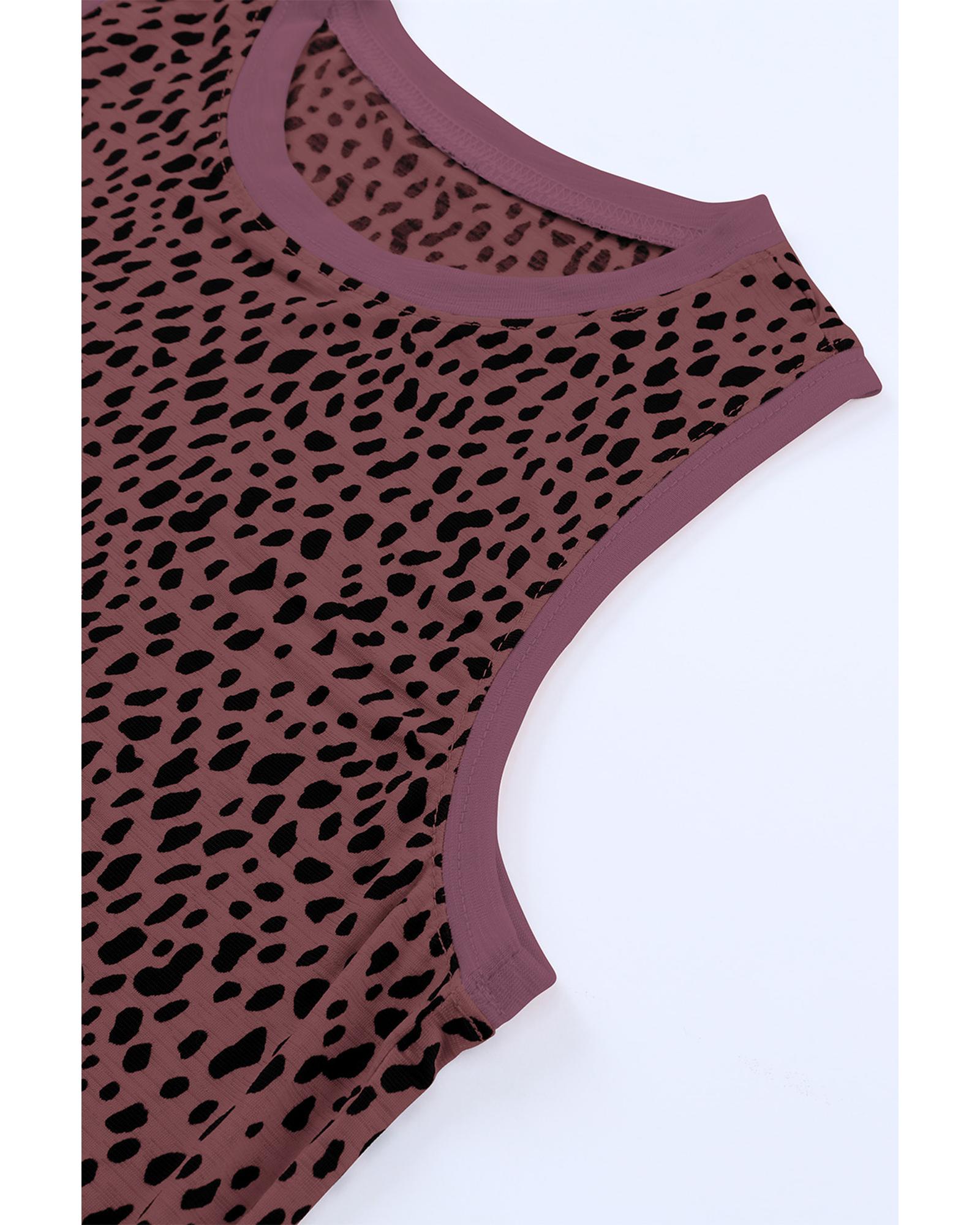 - Red Leopard Print Round Neck Tank Top