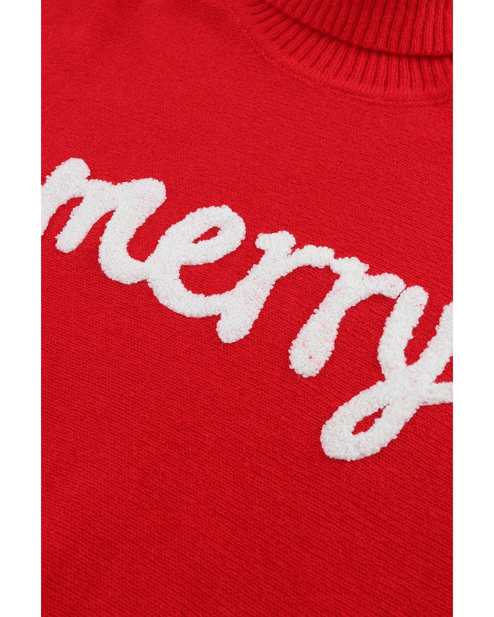 Azura Exchange Red Merry Letter Embroidered High Neck Sweater – S