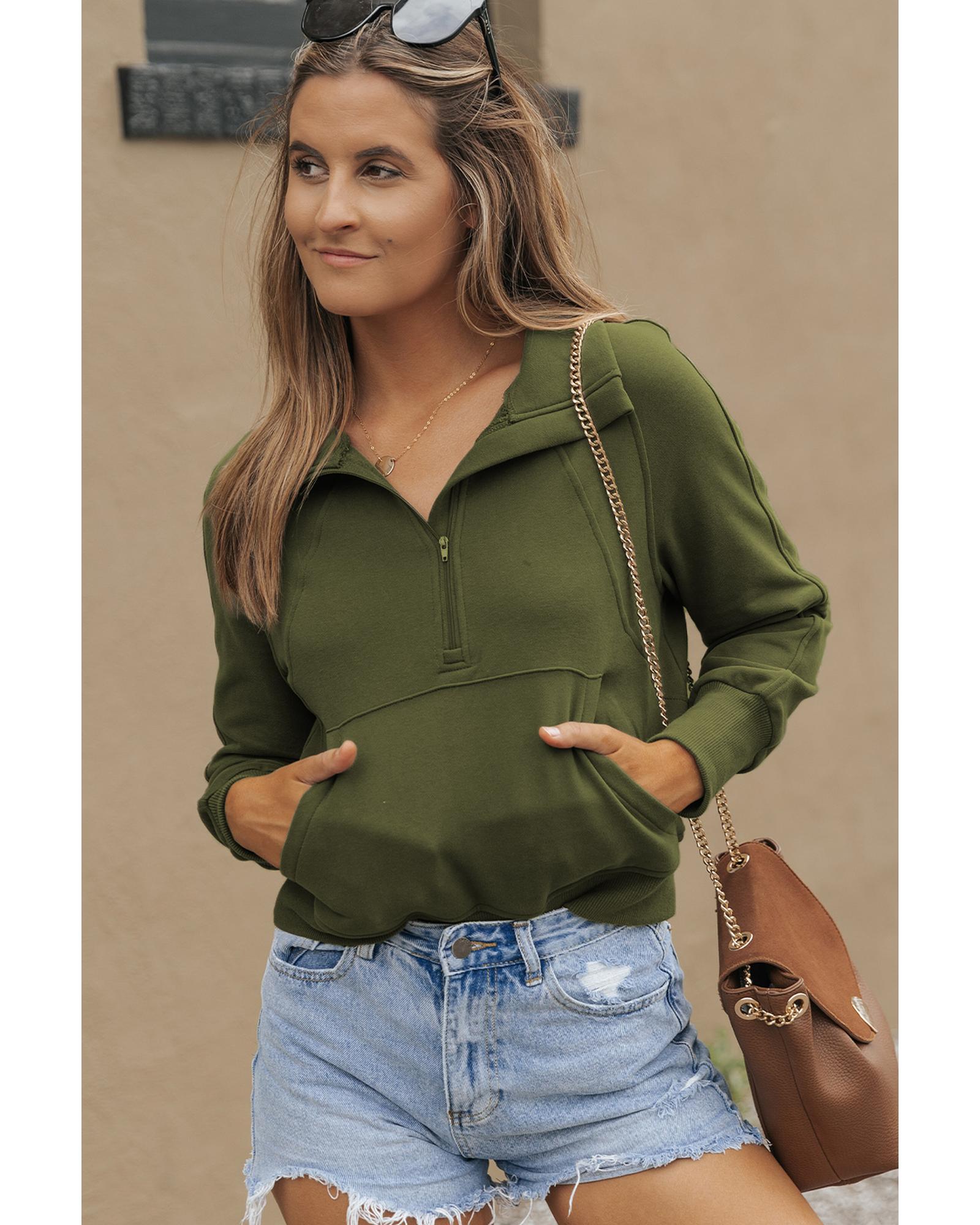 Azura Exchange Ribbed Thumbhole Sleeve Sweatshirt with Stand Collar and Zip Closure – XL