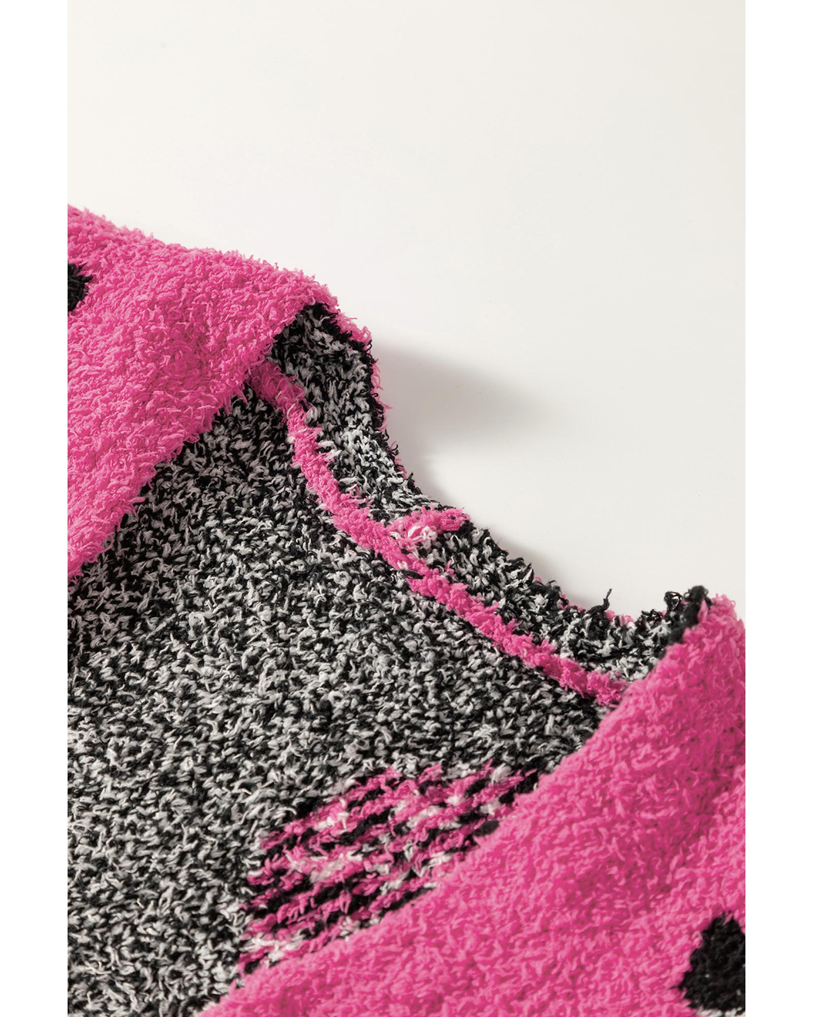 Azura Exchange Rose Red Cheetah Pattern Open Front Knitted Cardigan – M