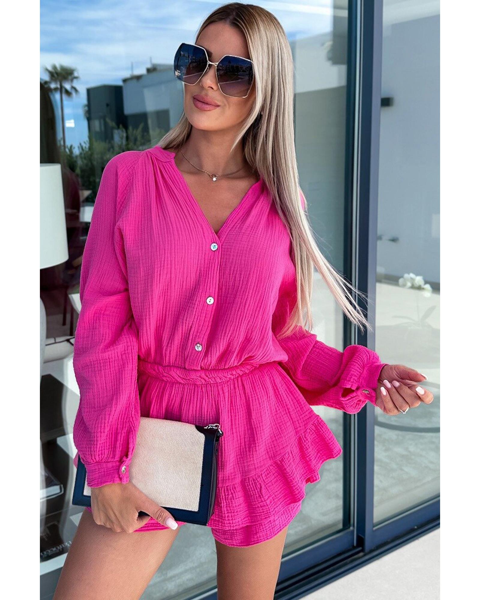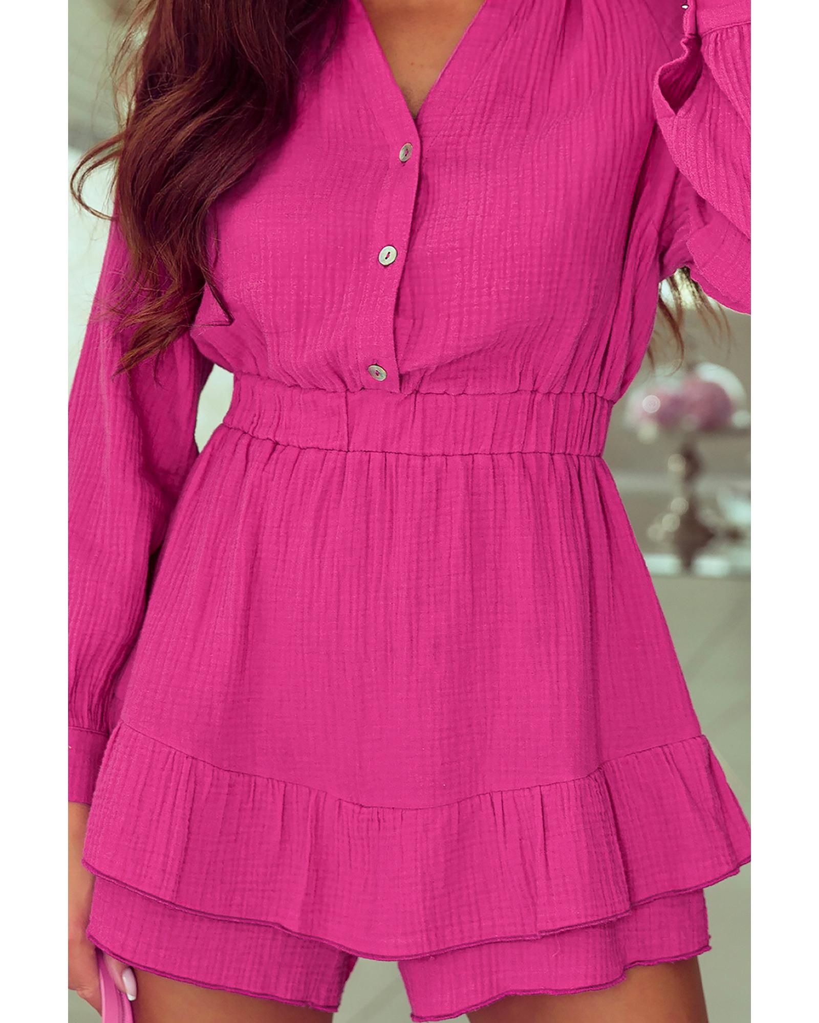 Azura Exchange Rose Textured Tiered Ruffled Buttoned Long Sleeve Romper – XL
