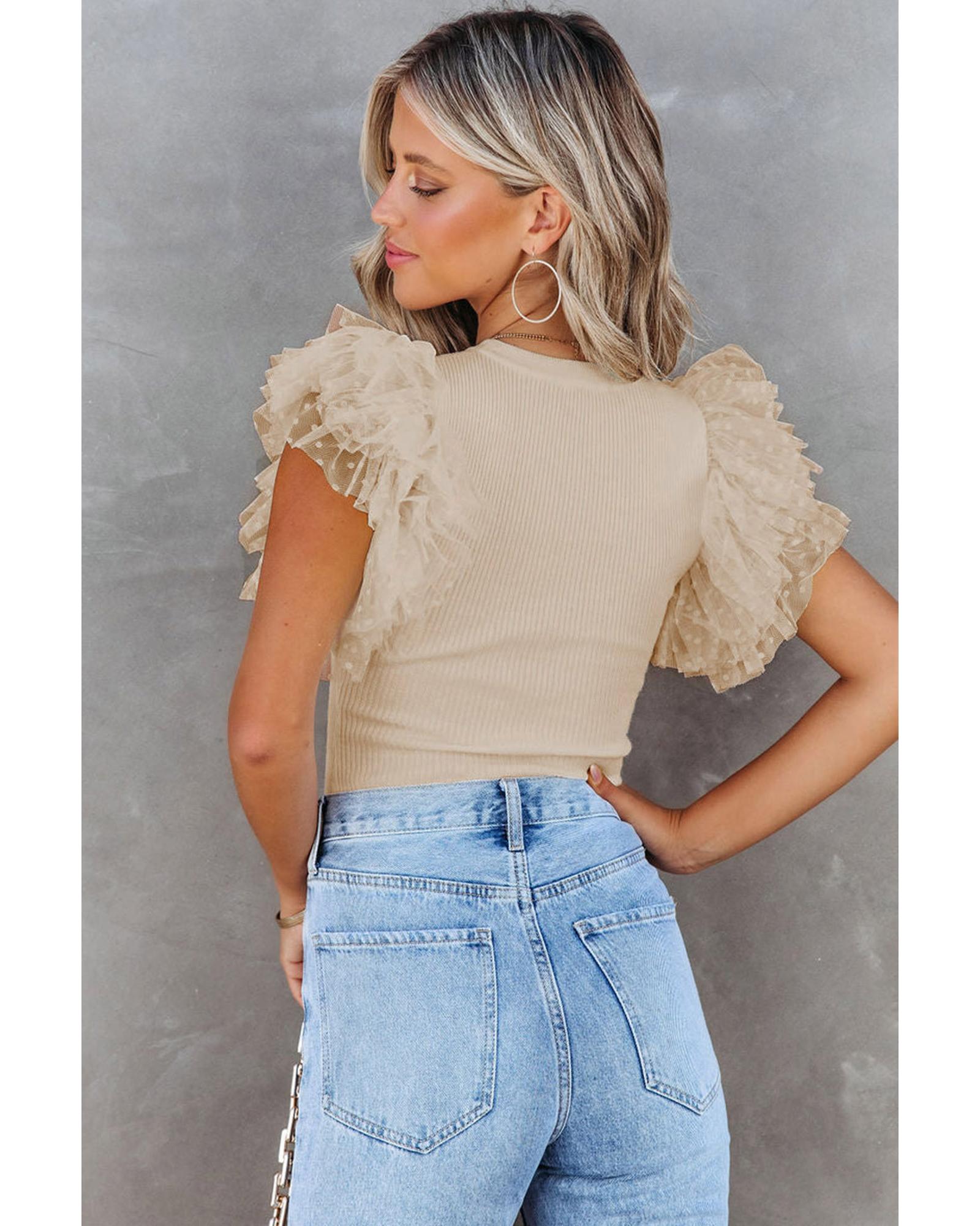 Azura Exchange Ruffle Sleeve Ribbed Knit Top – L