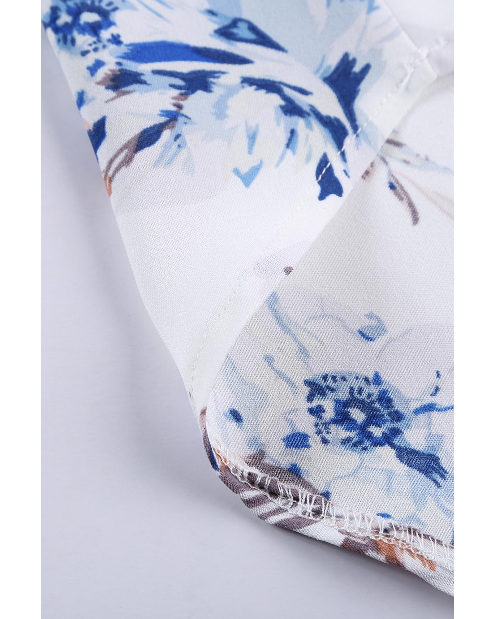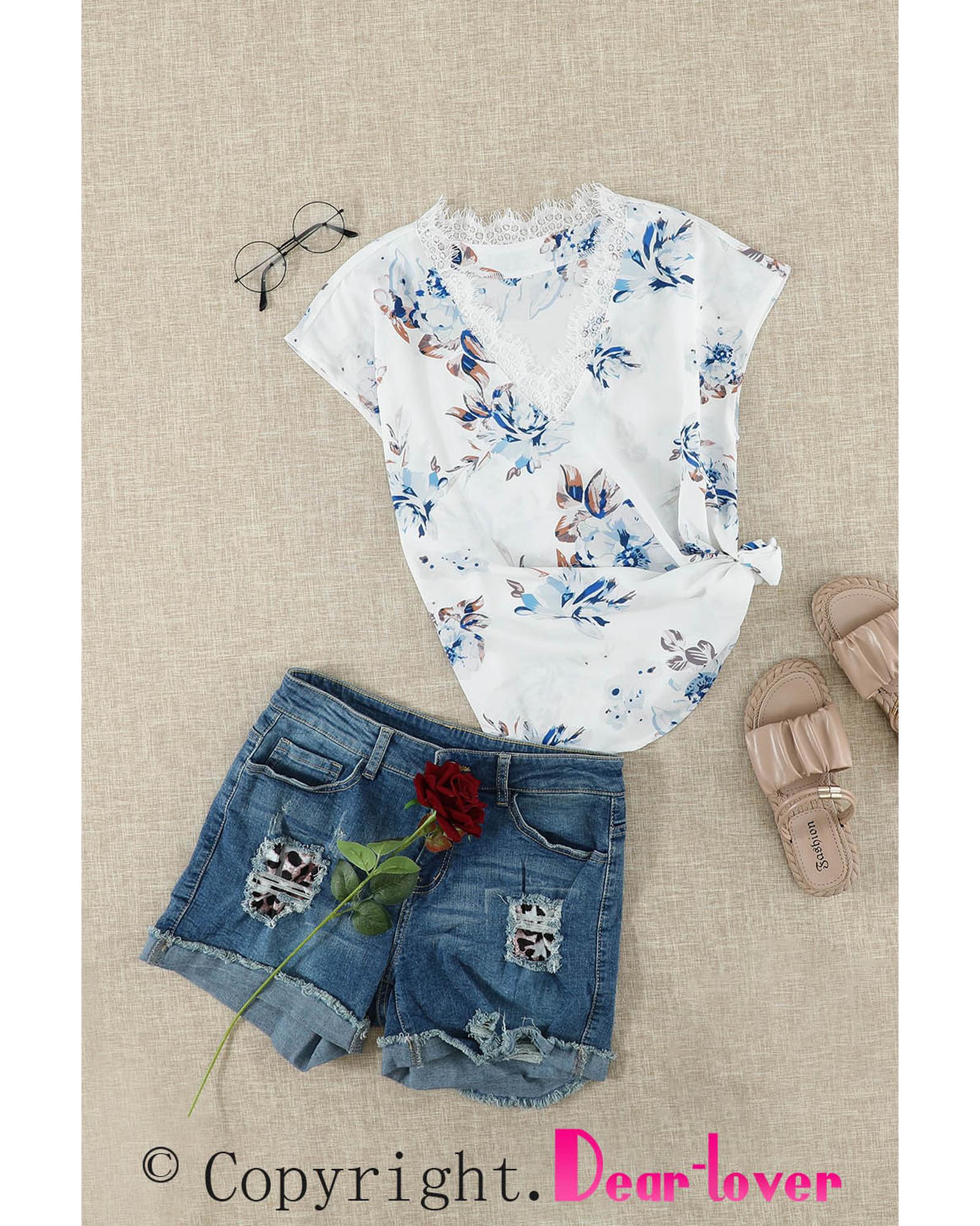 - Floral Scalloped V Neck Short Sleeves Top