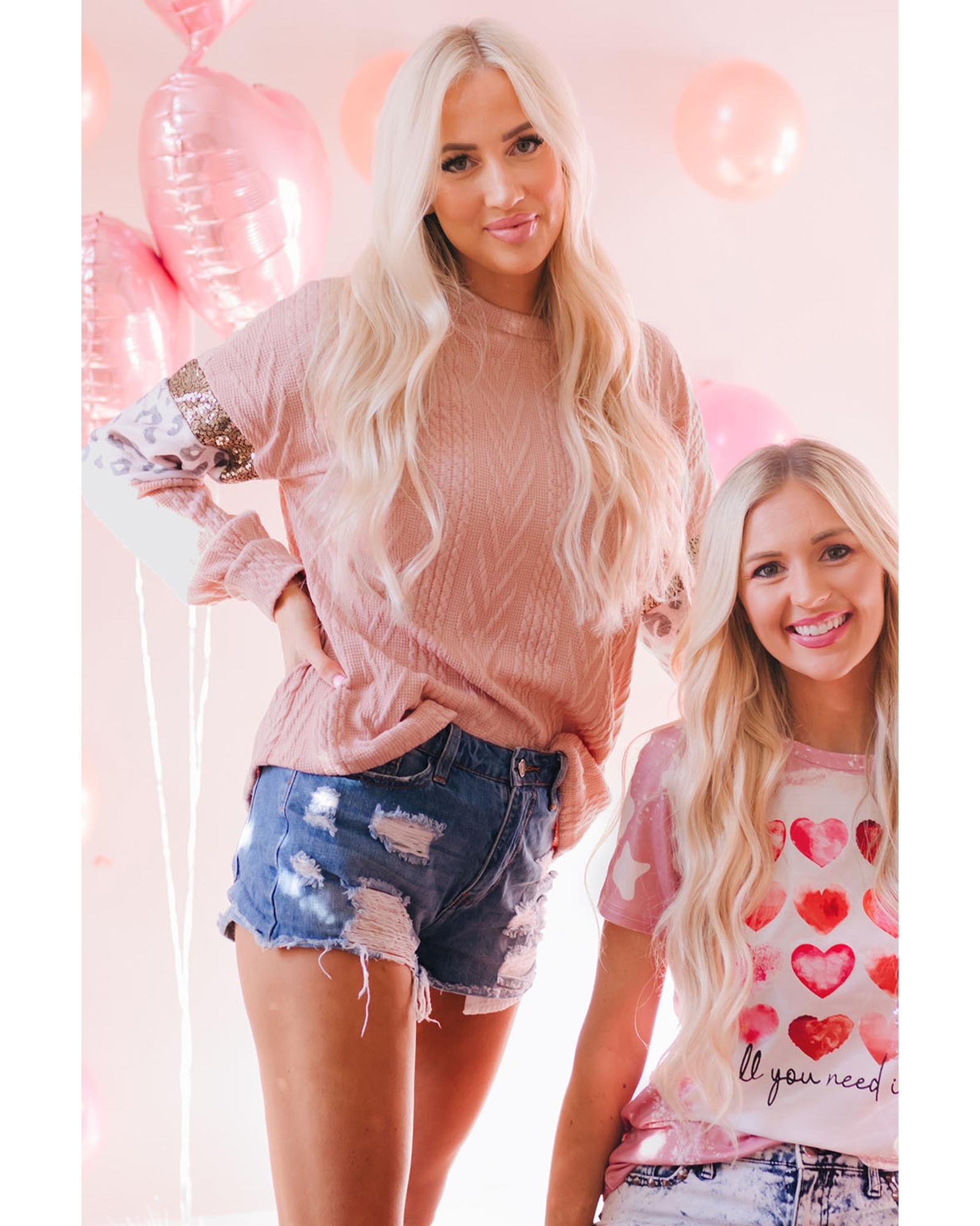 • Stylish and trendy Leopard Sequin Splicing Sleeves Textured Knit Top