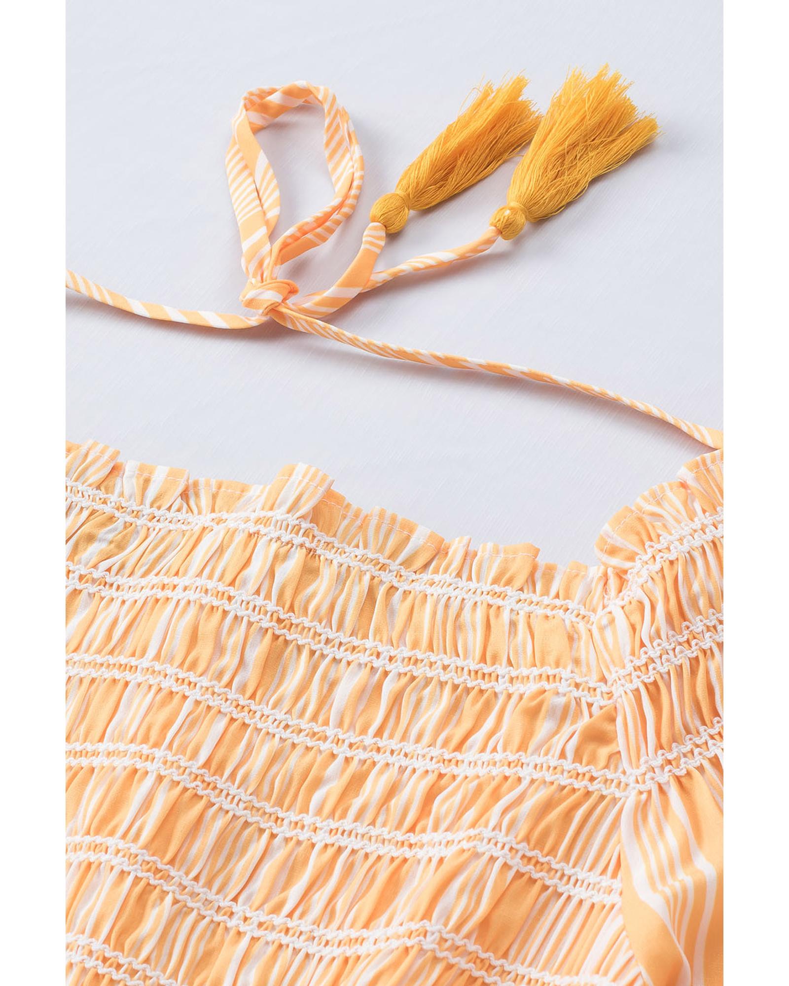 - Stylish and versatile Striped Print Smocked Flowy Blouse