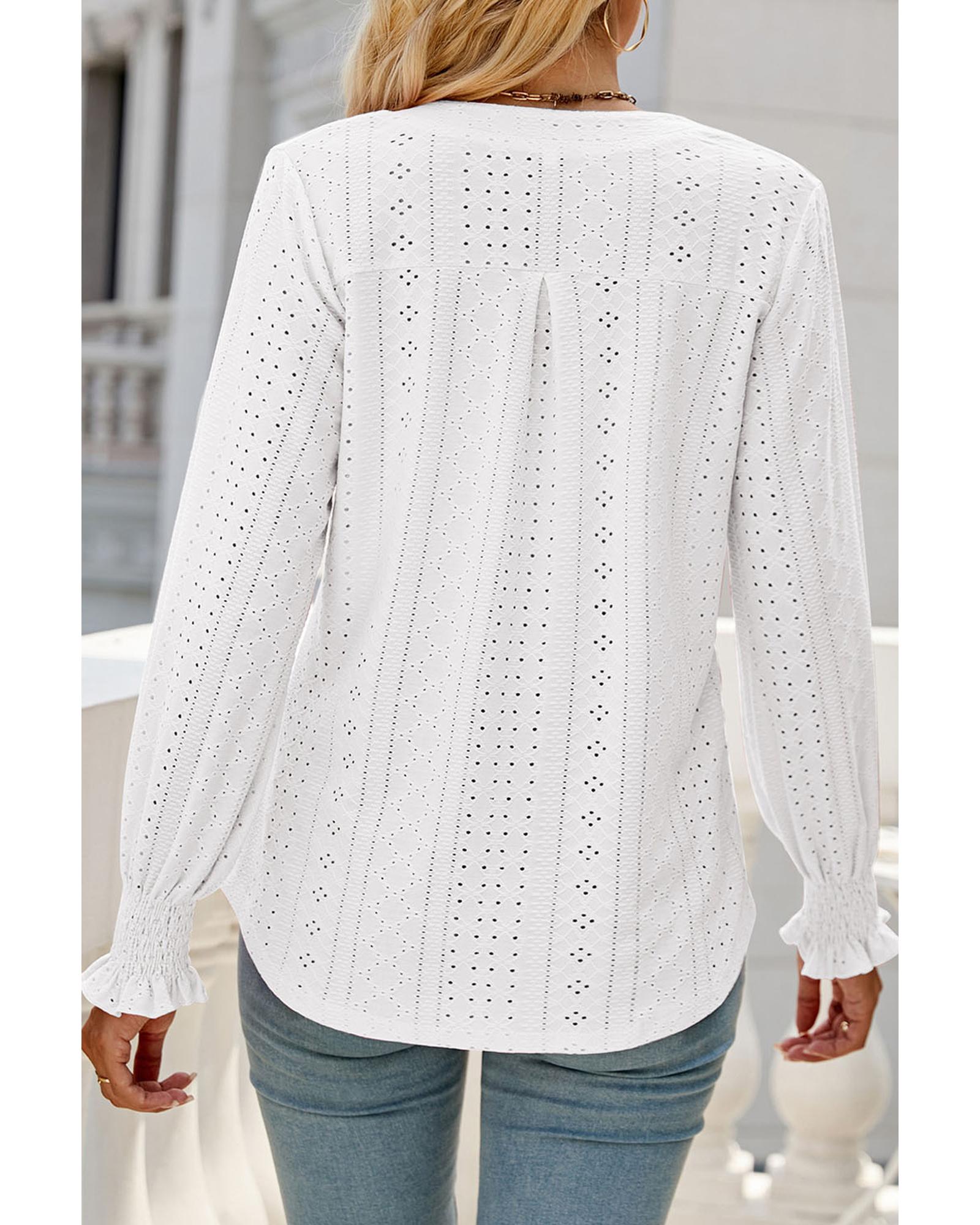 - Versatile and stylish White Split Neck Textured Loose Blouse