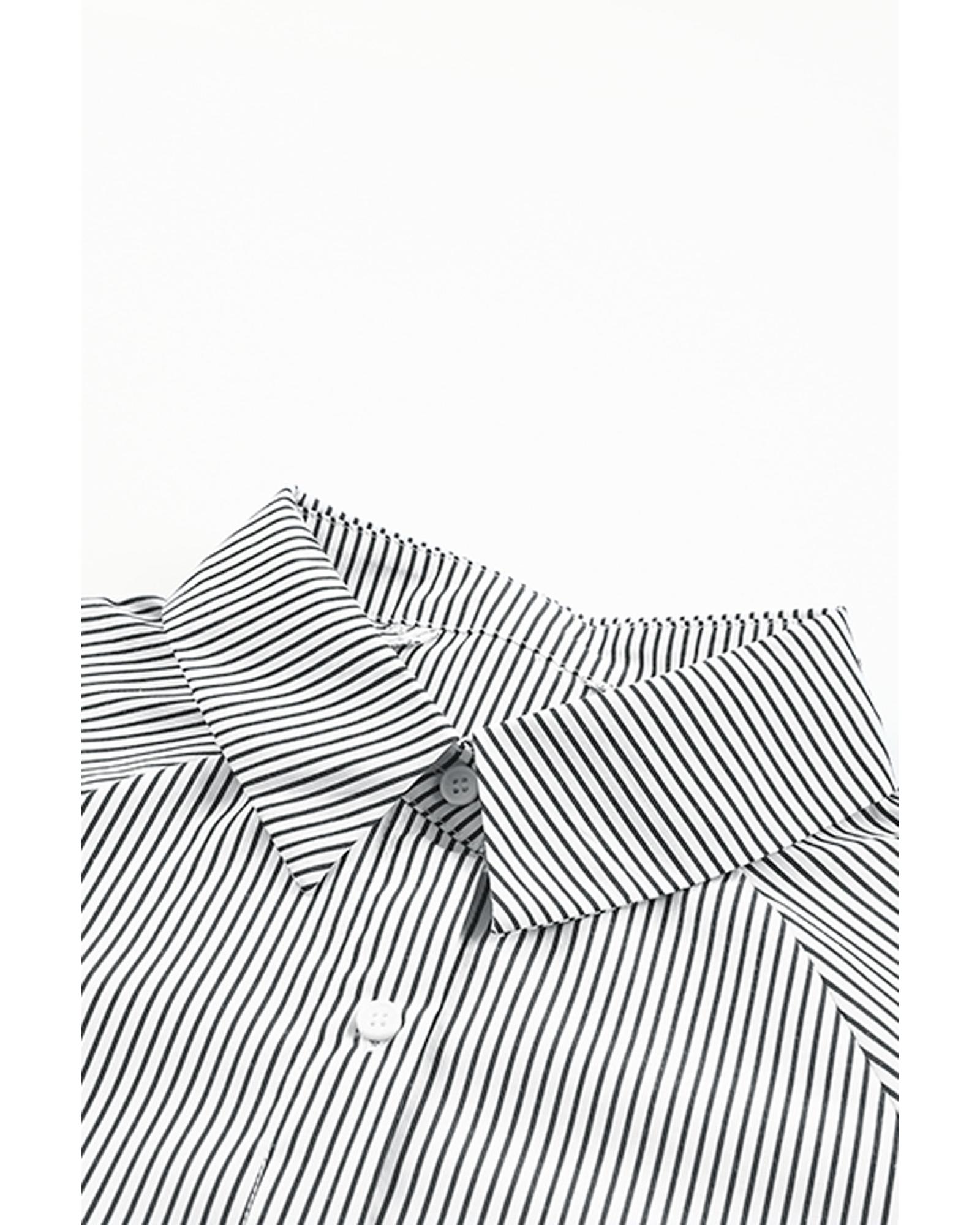 Azura Exchange Striped Boyfriend Shirt with Smocked Cuffs and Pocket - S