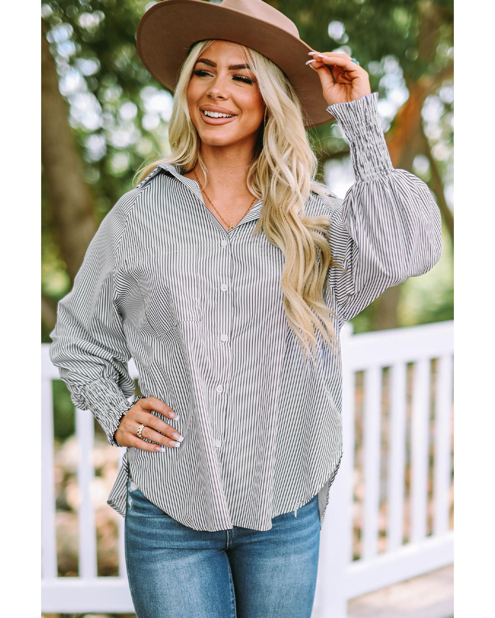 Azura Exchange Striped Boyfriend Shirt with Smocked Cuffs and Pocket – XL