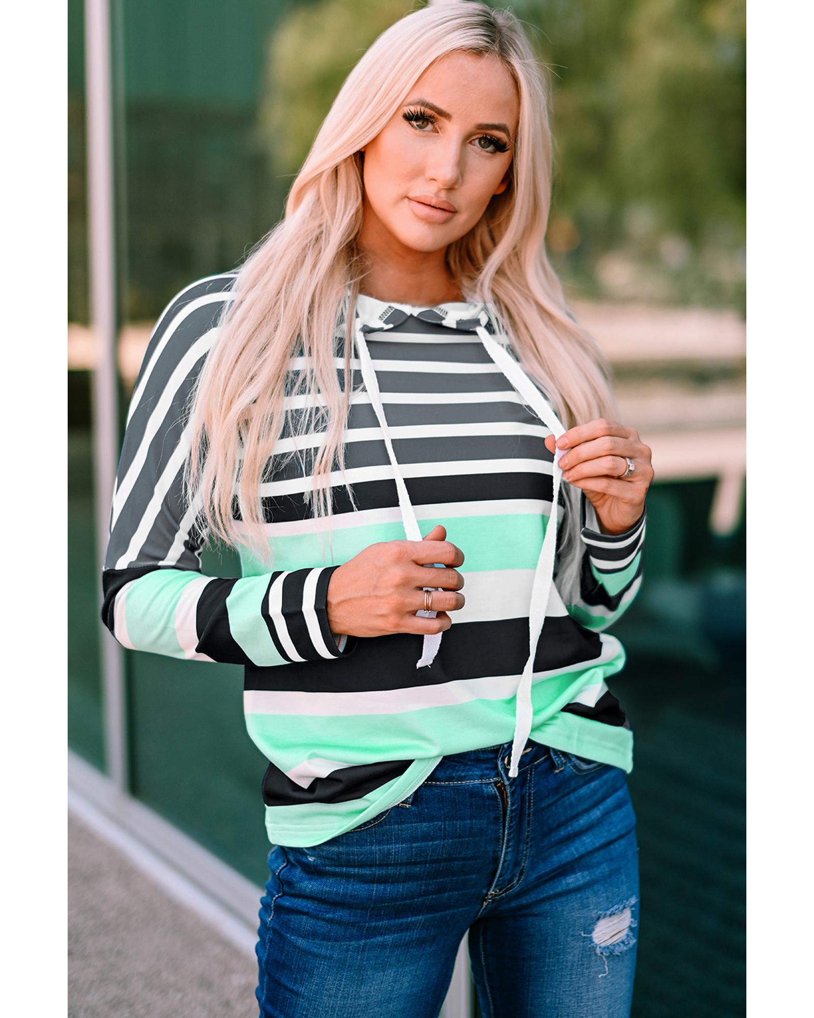• Style: Striped Drawstring Long Sleeve Hoodie