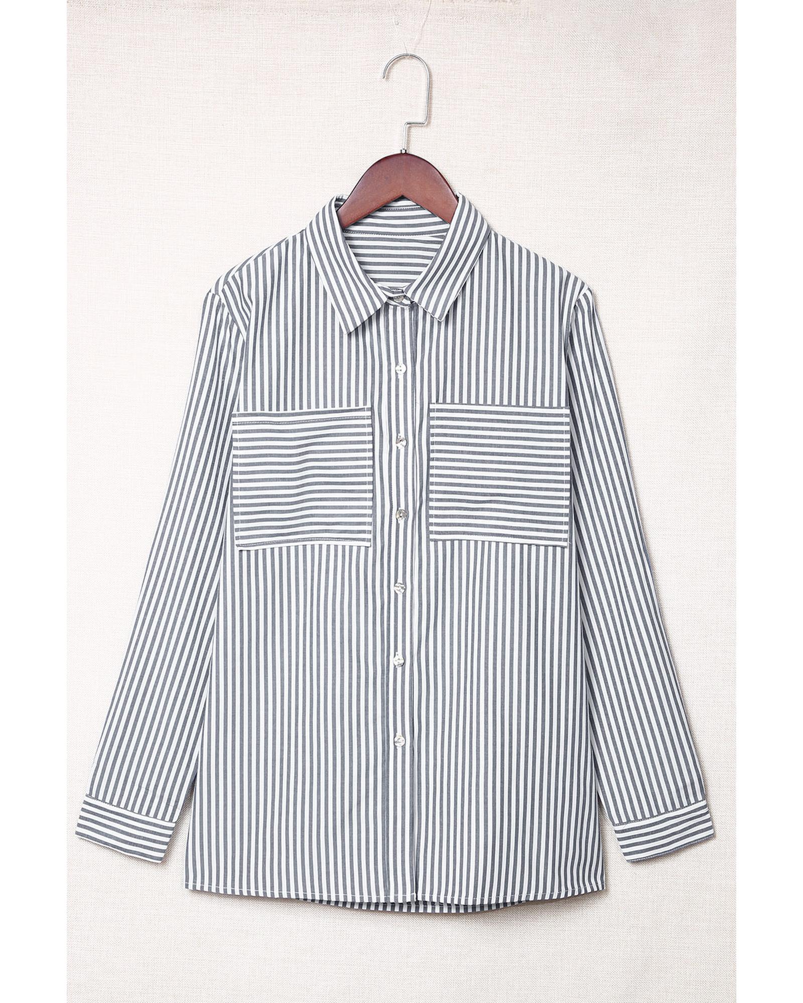 Azura Exchange Striped Long Sleeve Shirt with Pocketed Buttons – XL