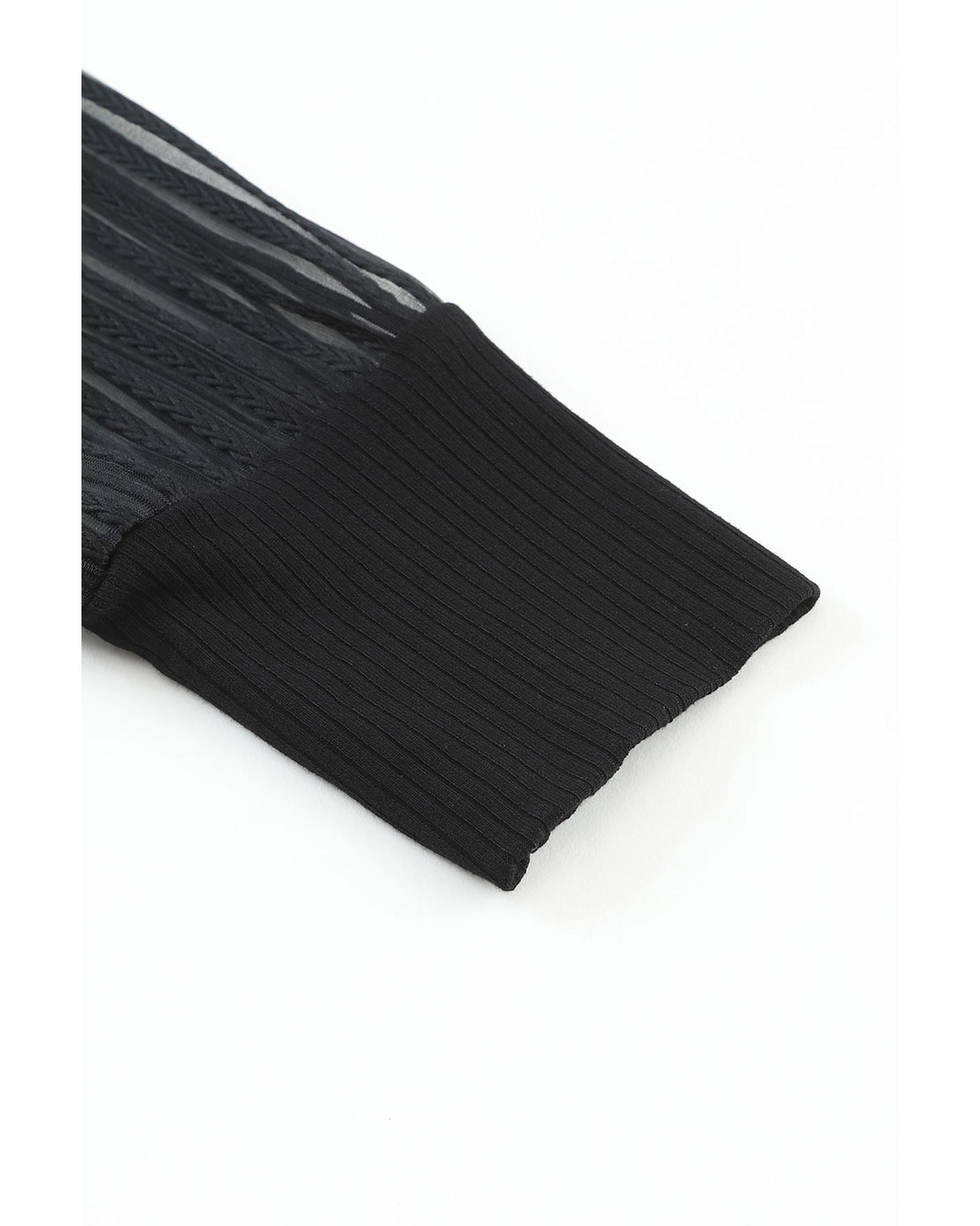 Azura Exchange Striped Mesh Long Sleeve Crewneck Ribbed Top - XL