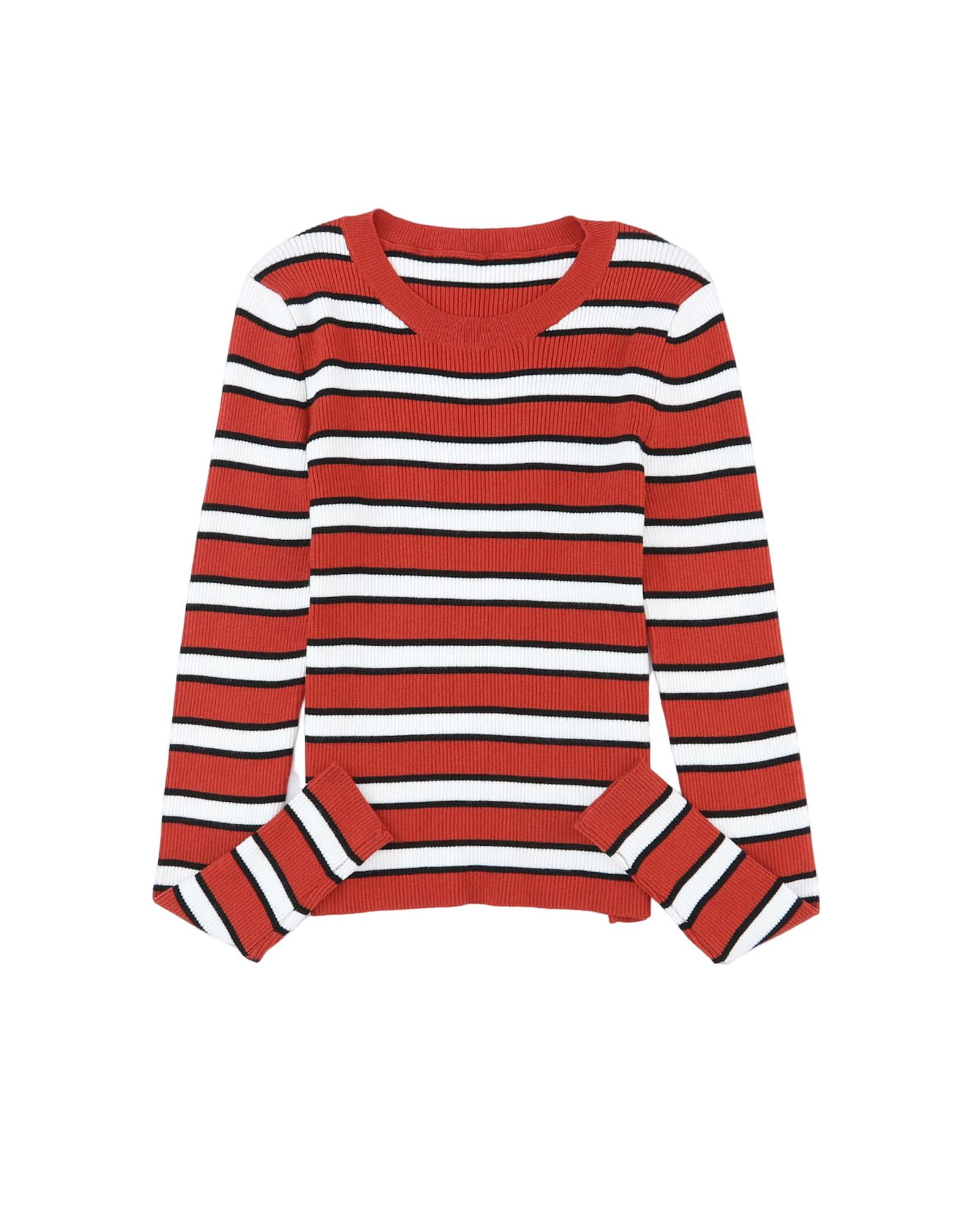 Azura Exchange Striped Ribbed Knit Slim Fit Top – S