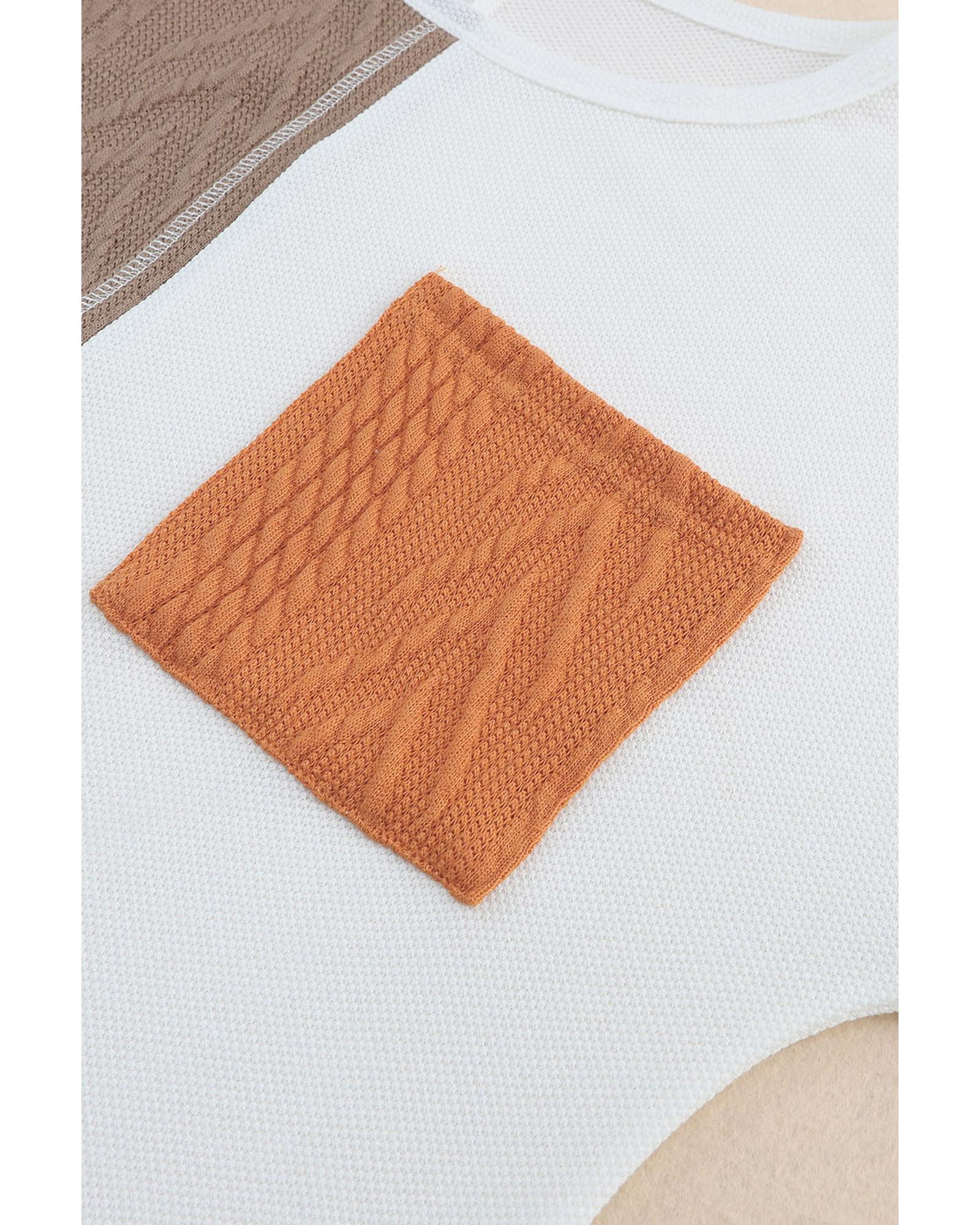 Azura Exchange Textured Knit Top with Colorblock Chest Pocket - S