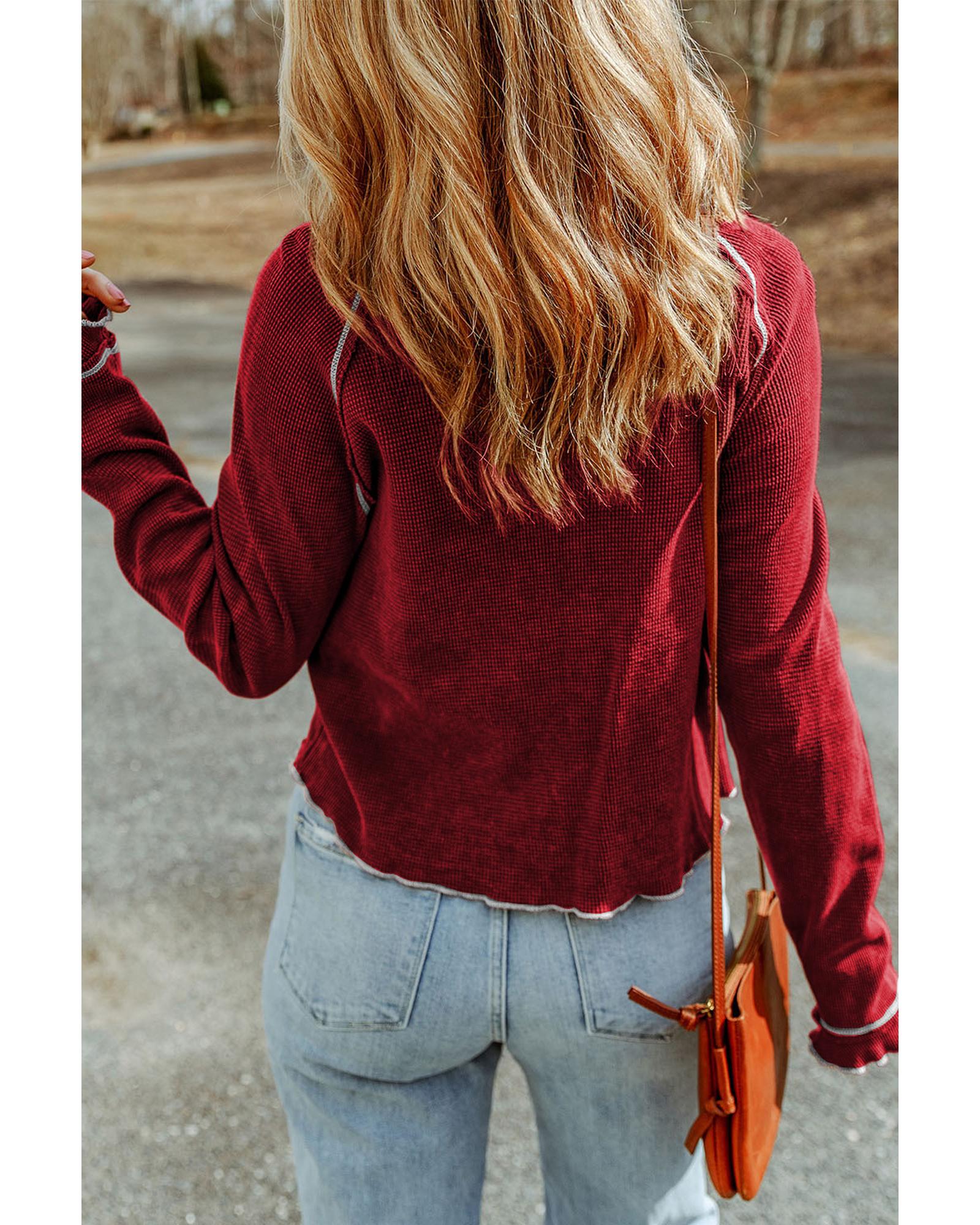 Azura Exchange Textured Round Neck Long Sleeve Top – S