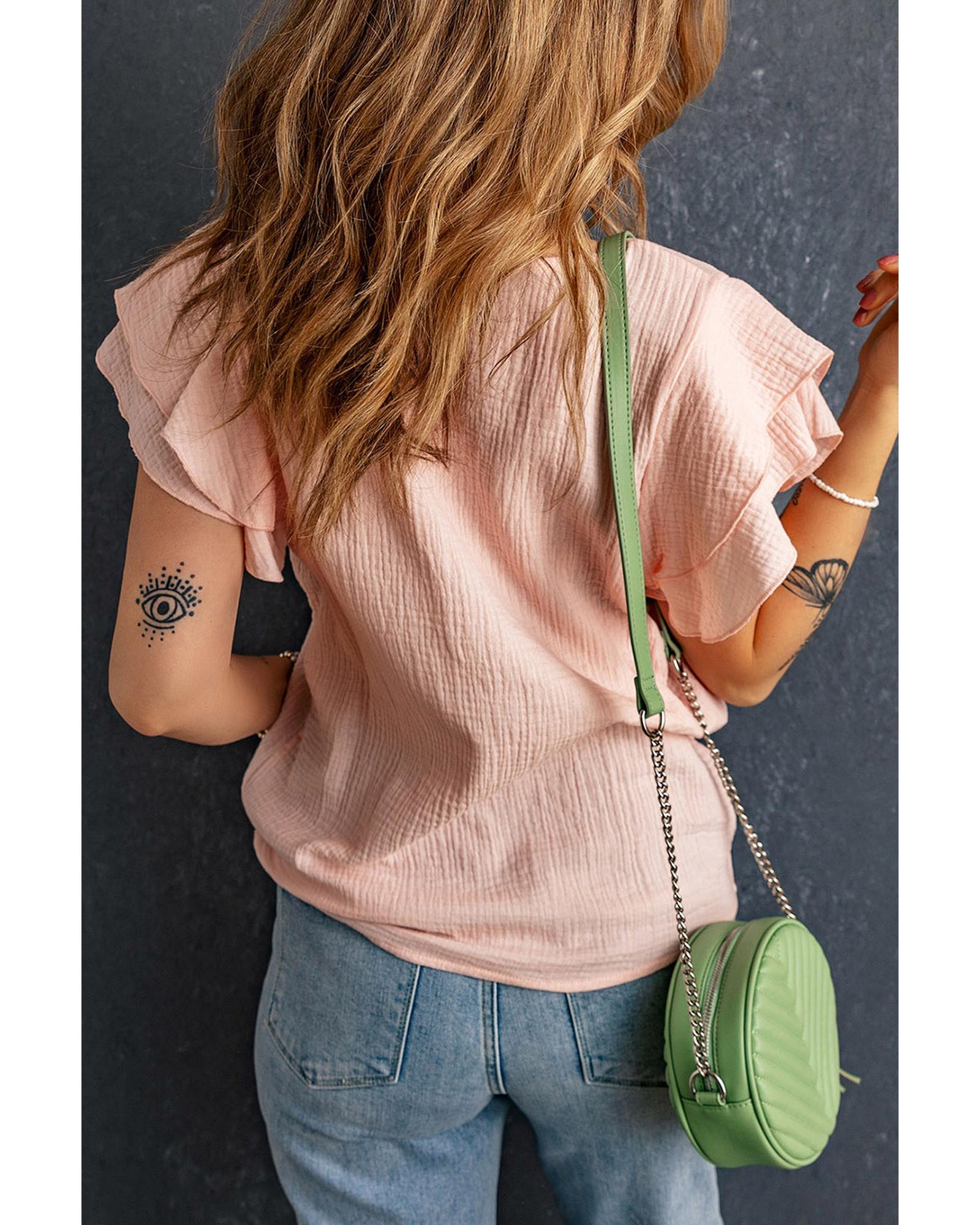 • Textured Tiered Ruffled Short Sleeve Blouse