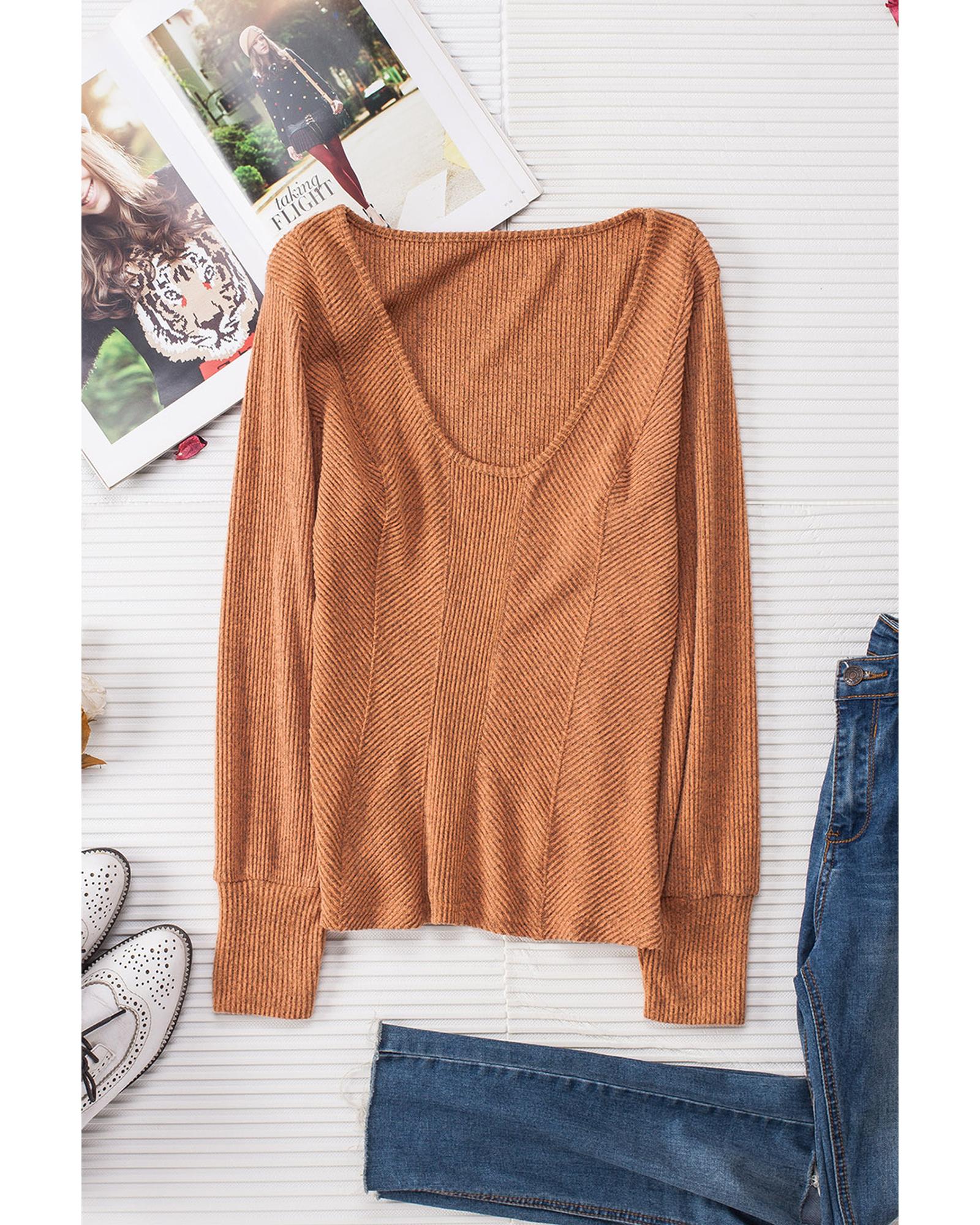 Azura Exchange U Neck Textured Long Sleeve Top - S