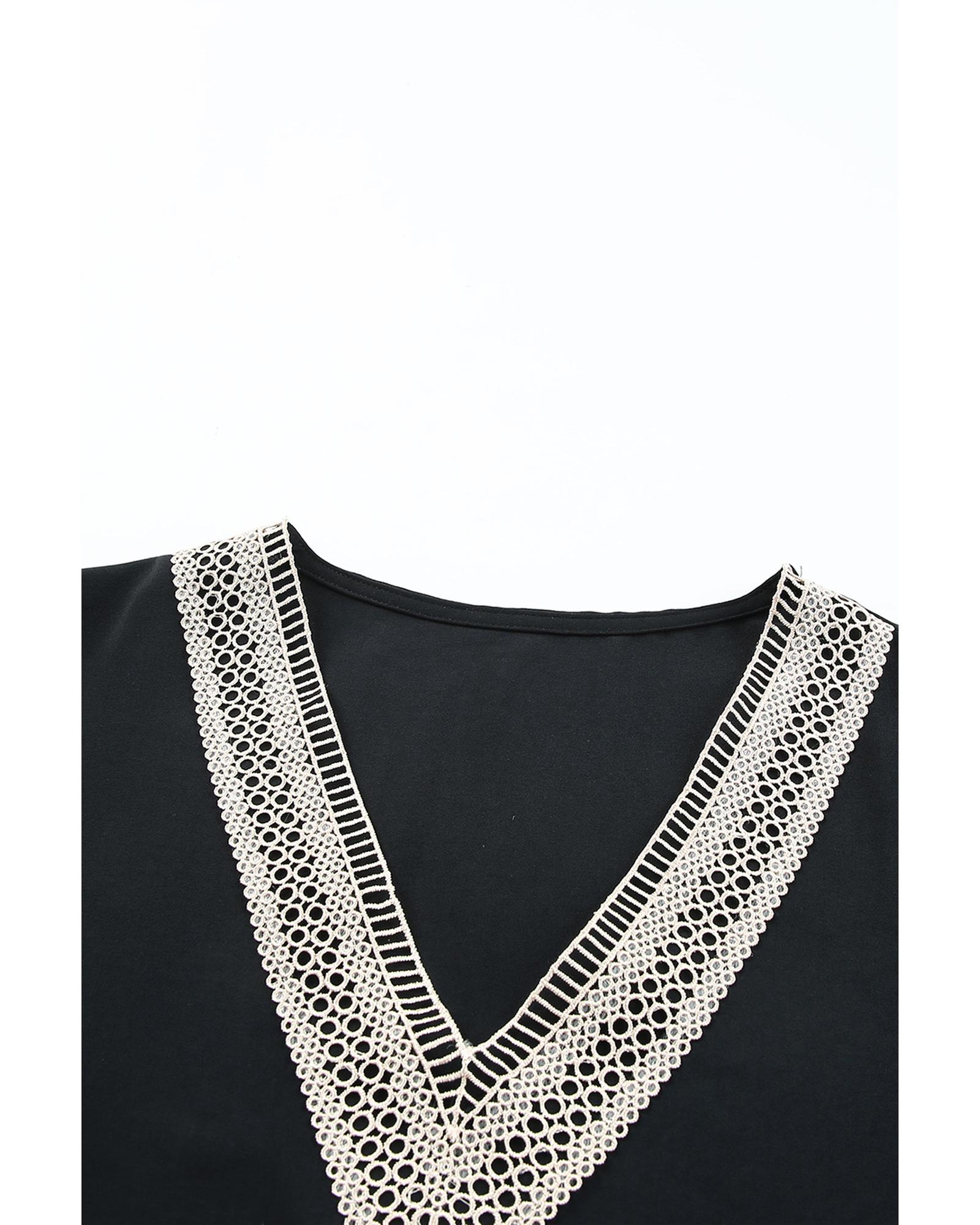 Azura Exchange V-Neck Short Sleeve Blouse with Lace Trim – XL