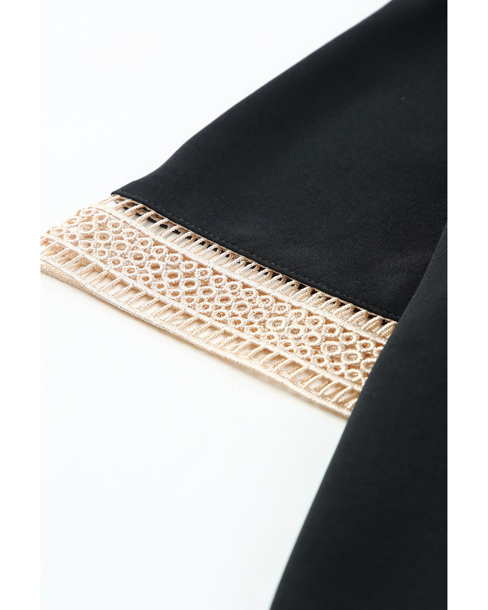 • Elegant Lace Trim V Neck Short Sleeve Blouse