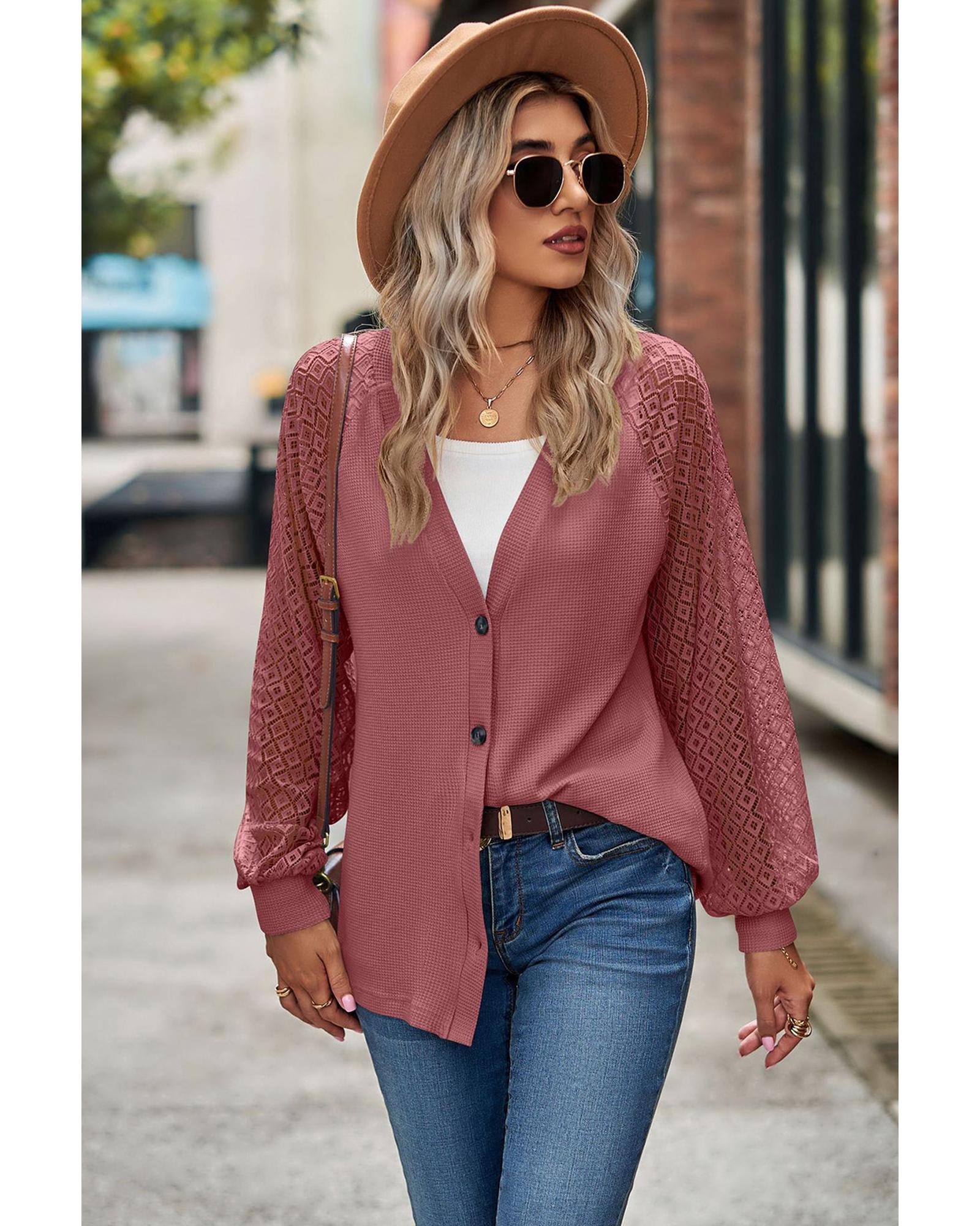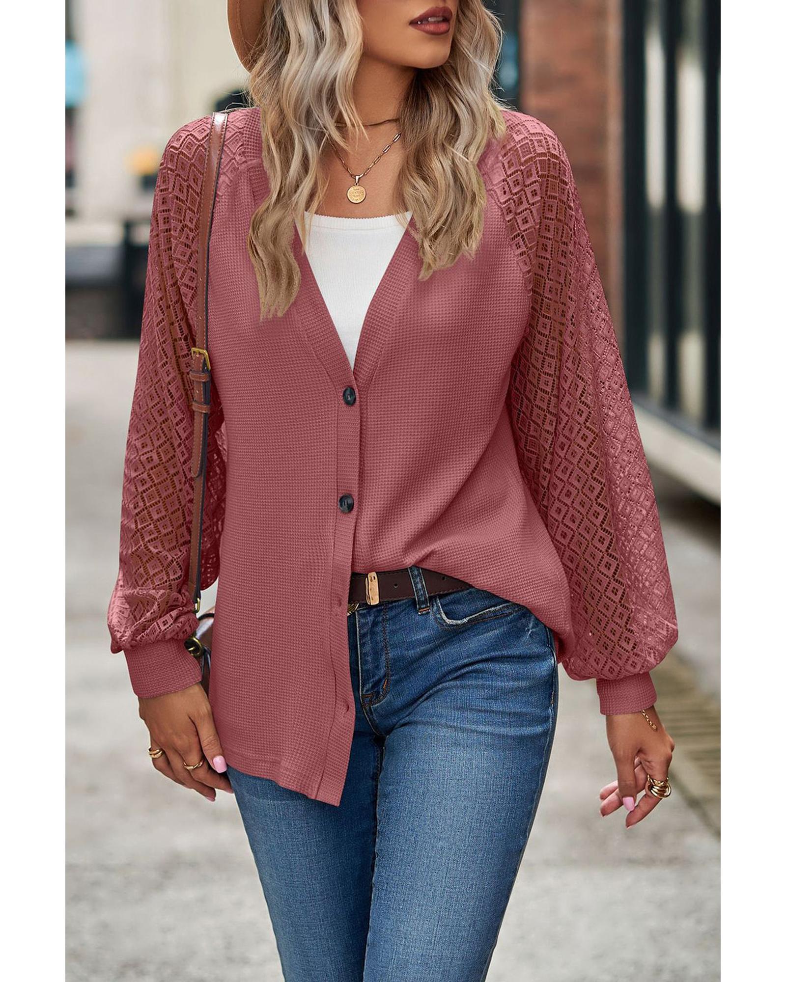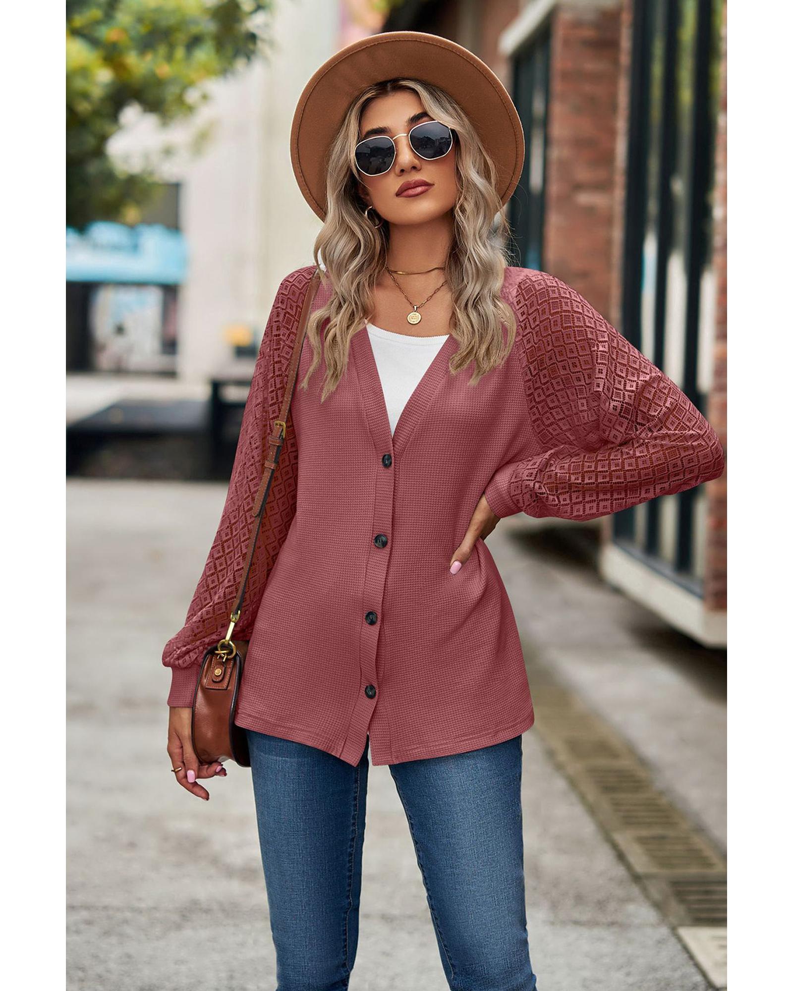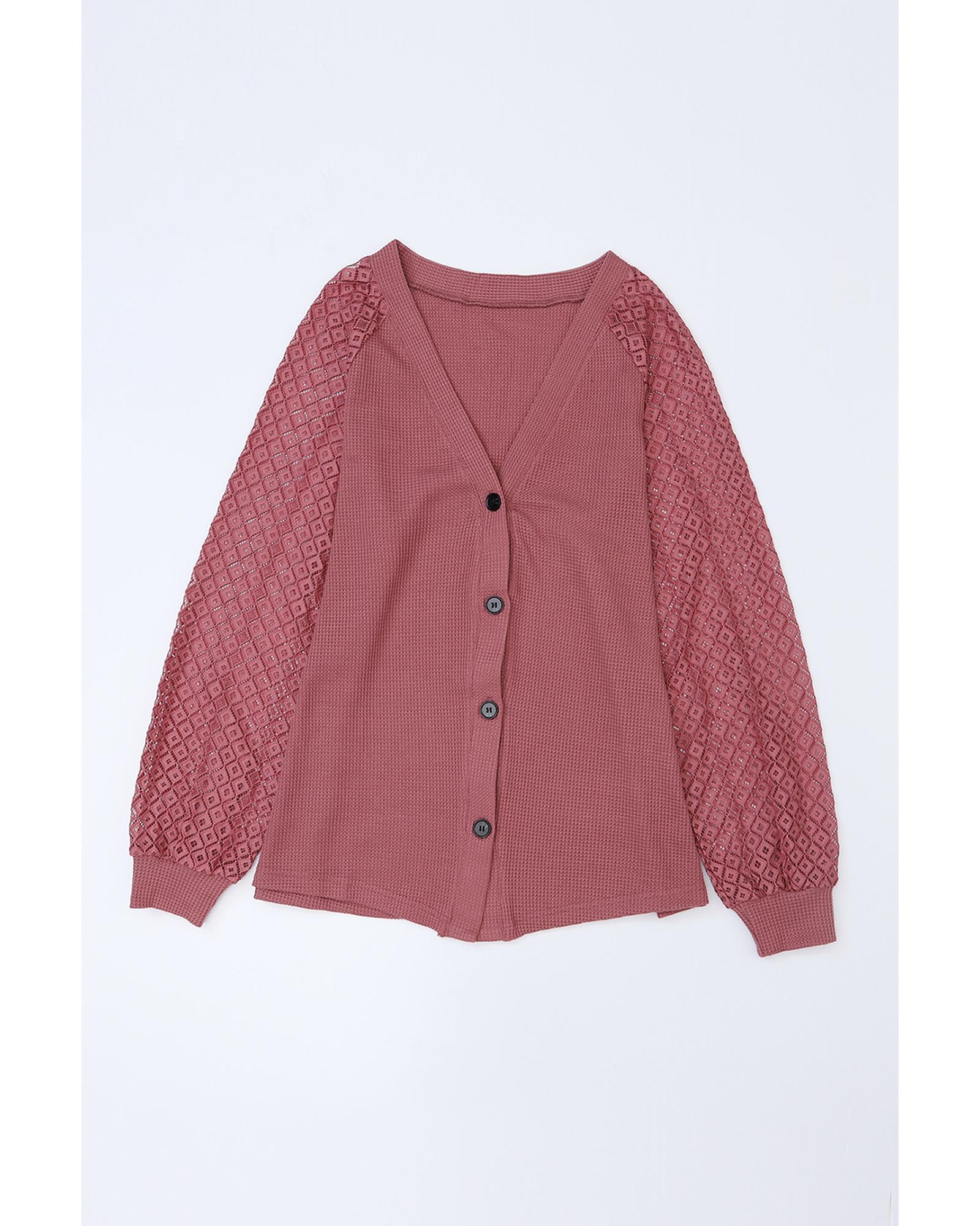 Azura Exchange Waffled Knit Lace Long Sleeve Buttoned Cardigan – L