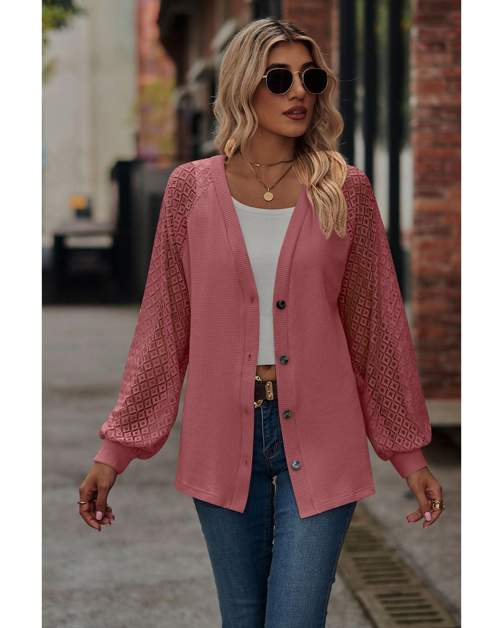 Azura Exchange Waffled Knit Lace Long Sleeve Buttoned Cardigan – S