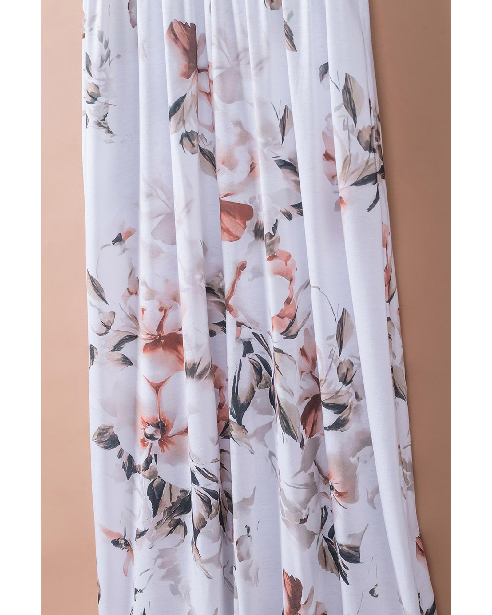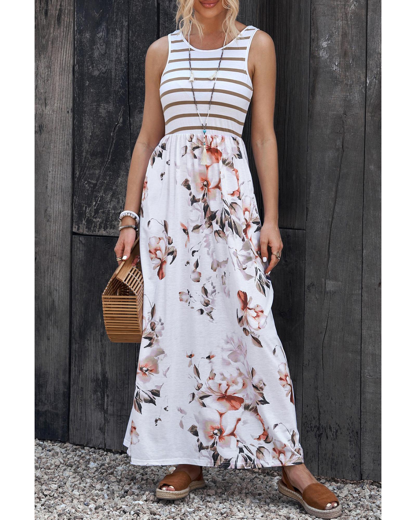 Azura Exchange White Striped Floral Print Sleeveless Maxi Dress with Pocket – S