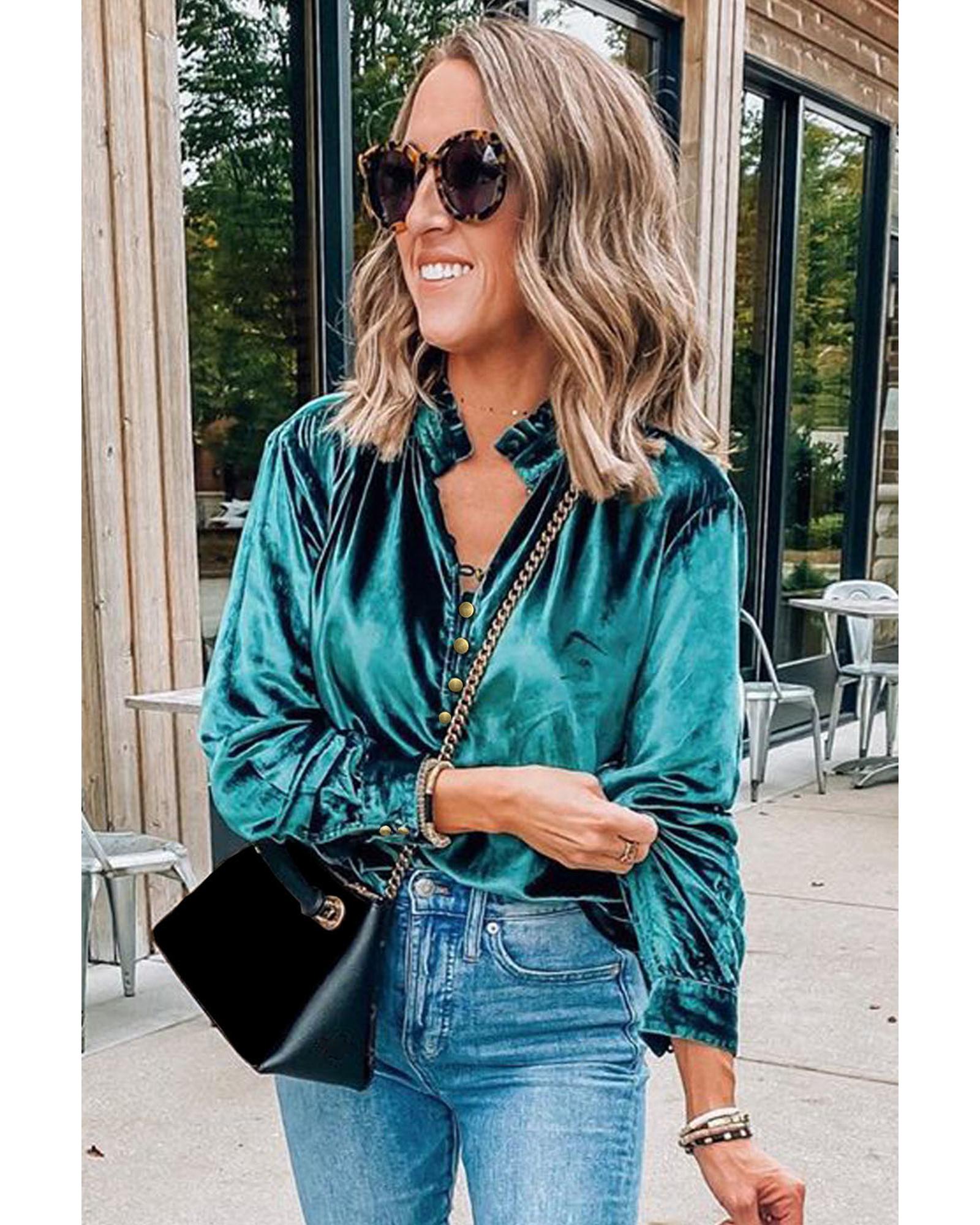 Blue Sheer Stripe V-Neck Top - L Original price was: $55.99.Current price is: $29.99.