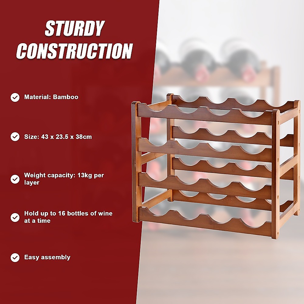 Here's the perfect choice for wine aficionados seeking a professional way to preserve their cherished bottles. It also serves as an exceptional gift, appealing to both novice wine enthusiasts and experienced connoisseurs, offering them an elegant and sophisticated means to showcase and preserve their wine collections. Our wine bottle holder is expertly crafted from natural bamboo, ensuring a solid and lightweight yet robust construction that resists deformation over time.