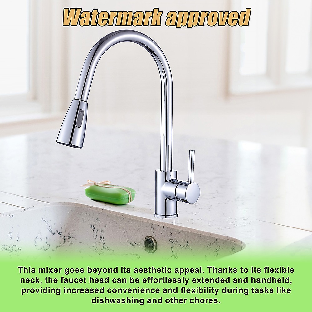 This mixer goes beyond its aesthetic appeal. Thanks to its flexible neck, the faucet head can be effortlessly extended and handheld, providing increased convenience and flexibility during tasks like dishwashing and other chores. Returning to a traditional mixer is just as straightforward.