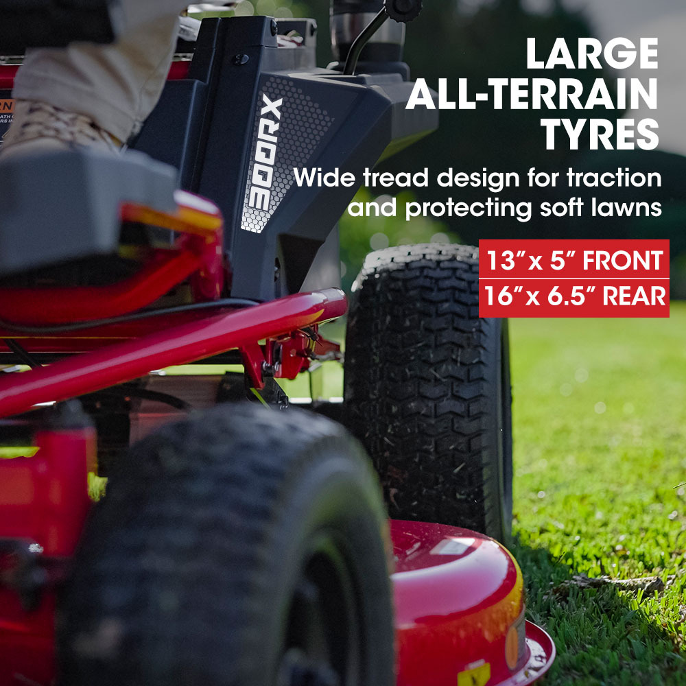 The Baumr AG 300RX ride-on mower is driven by 3 Brushless motors. A 1000w motor powering the rear wheels and two 1200W motors, spinning two blades independently at 3500 RPM. The 300RX comes with a cruise control feature to provide maximum efficiency and consistency when mowing.