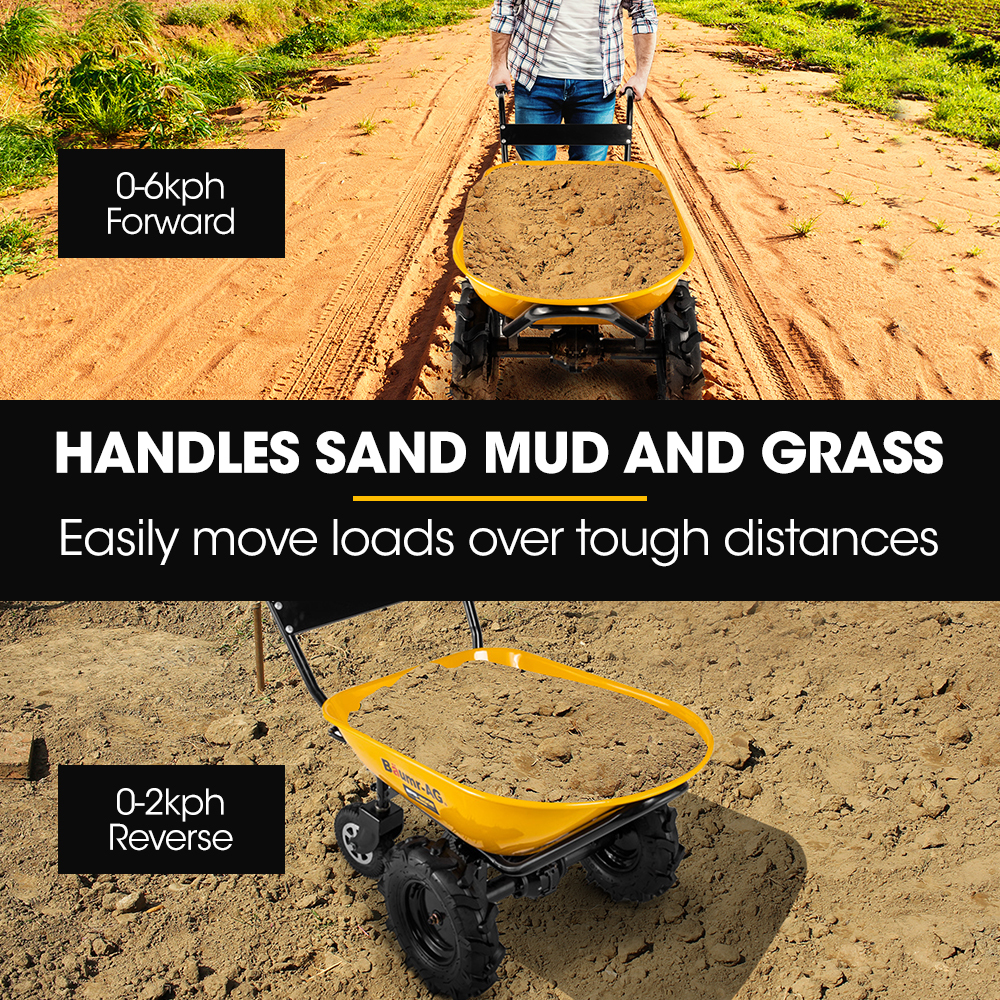 With speeds of up to a brisk 6km/h you’ll experience the incredible high productivity and low fatigue that the BPR-800E enables. Carrying heavy loads is a breeze with its impressive max load capacity of 260kg on flat ground and can haul 200kg up a 12 incline. Conquer any obstacle with confidence, whether you’re tackling challenging terrain or longer distance, this wheelbarrow makes it easy to handle all your material needs.
