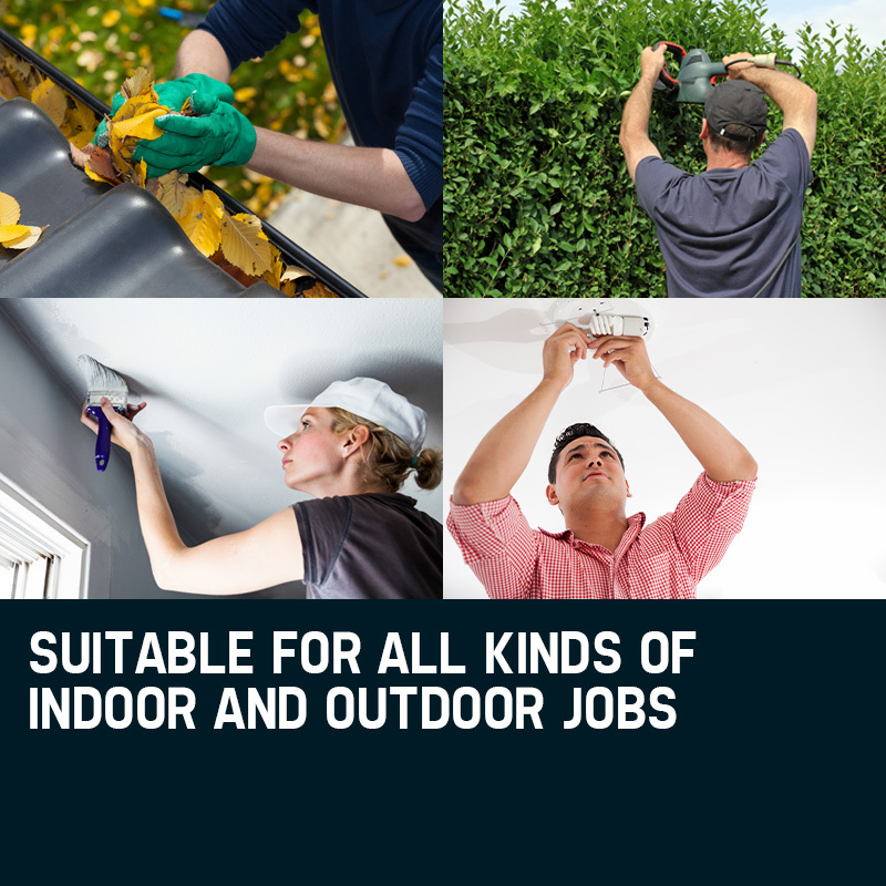 One of the most practical features of this unit lies in its innovative isolated height adjustment. This allows the scaffolding to be placed on uneven surfaces like steps or slopes. Simply raise one side of its posts higher than the other, then place the raised side on the elevated surface to create a level platform. This unique design feature makes the unit applicable to countless more tasks than would otherwise be possible. For instance, working at heights outdoors becomes achievable given the contours of natural surfaces. Tasks like pruning, lopping, hedging, rendering, and cleaning gutters can be fulfilled with ease. Indoors, working on stairways and split-levels is no problem. Execute your work with total peace of mind knowing that the spring loaded platform clamps, and eight locking pins are securing the platform and casters in place.