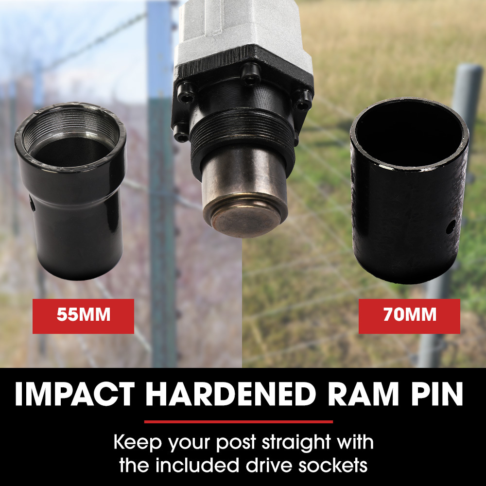 The power delivered by the Baumr-AG post rammer is significantly higher in frequency and impact energy than a manual driver. The 1800BPM ram head delivers a massive 55J per beat, efficiently driving whatever you need put in the ground.;