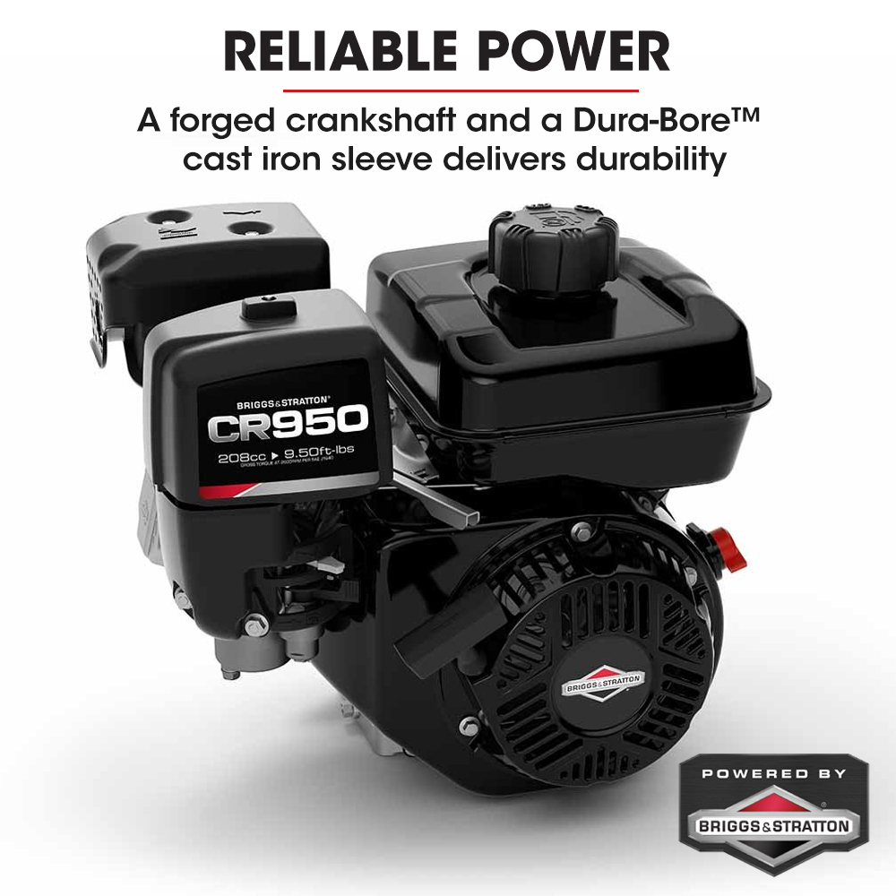 • Engine: Briggs Stratton CR950, 208cc, 6.5HP 4-Stroke