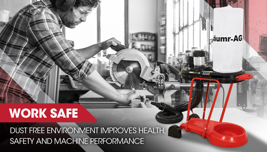 Thanks to its sturdy build and mobile design, the Baumr-AG Woodworking Industrial Dust Collector can be moved around as needed, and the collection bag is easily removed thanks to quick-action clamps. Work smarter and enjoy the satisfaction of completing your projects in a clean, dust-free workshop.