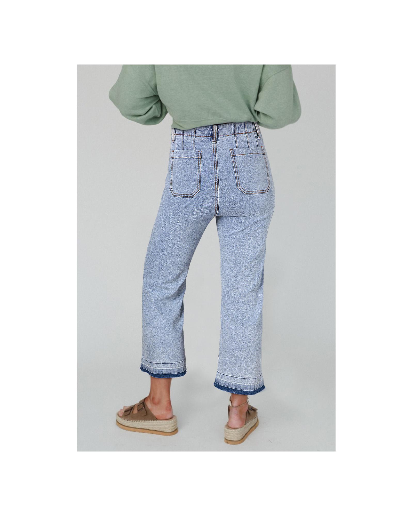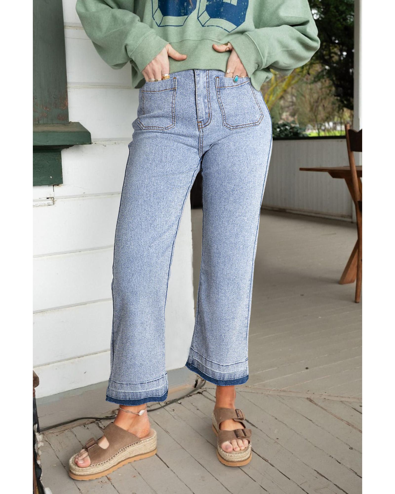 Beau Blue Acid Wash Contrast Edge Pocketed Cropped Jeans – 12 US