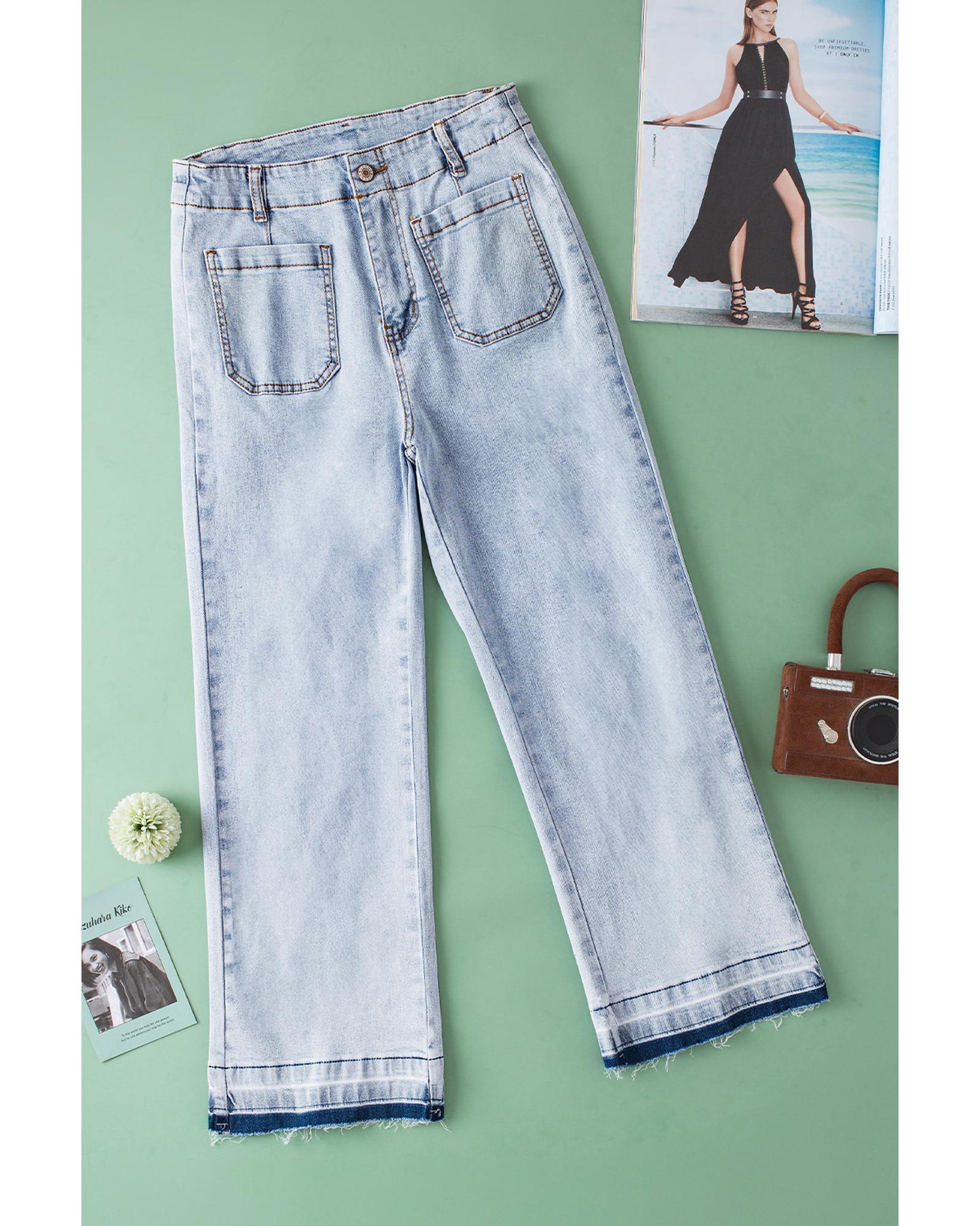 Beau Blue Acid Wash Contrast Edge Pocketed Cropped Jeans – 16 US