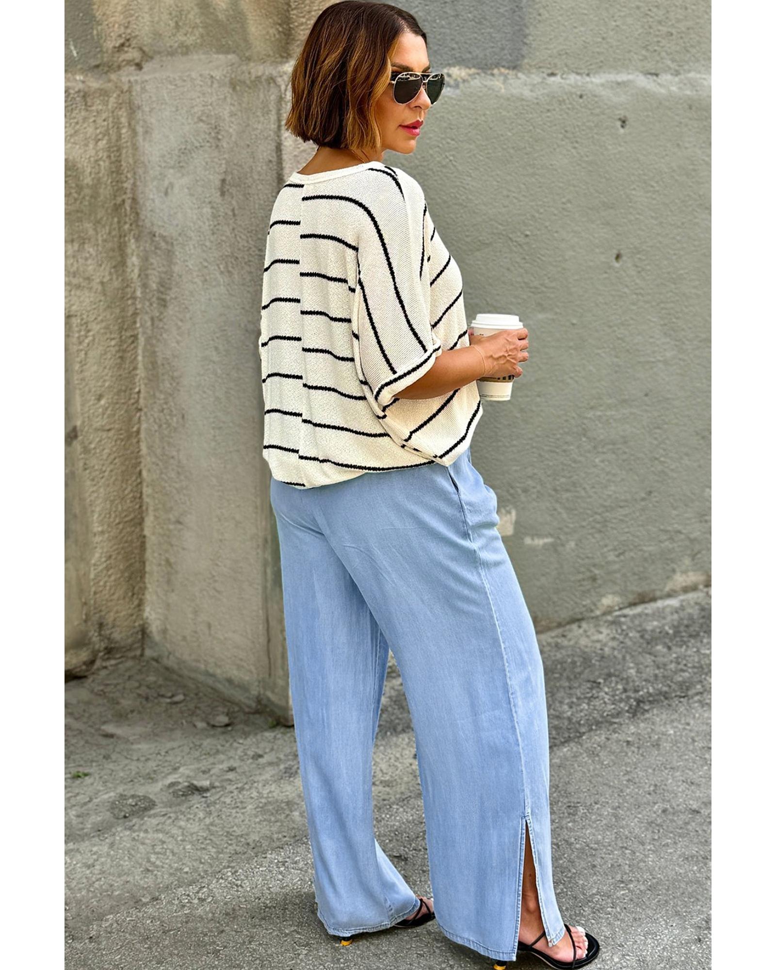 Beau Blue Casual Wide Slit Leg High Waist Loose Plus Size Jeans – 3X