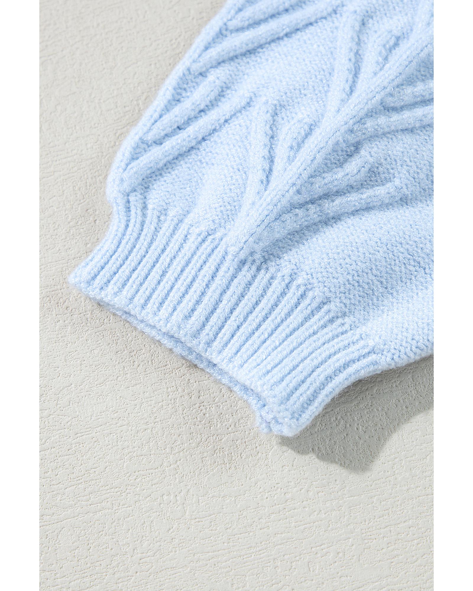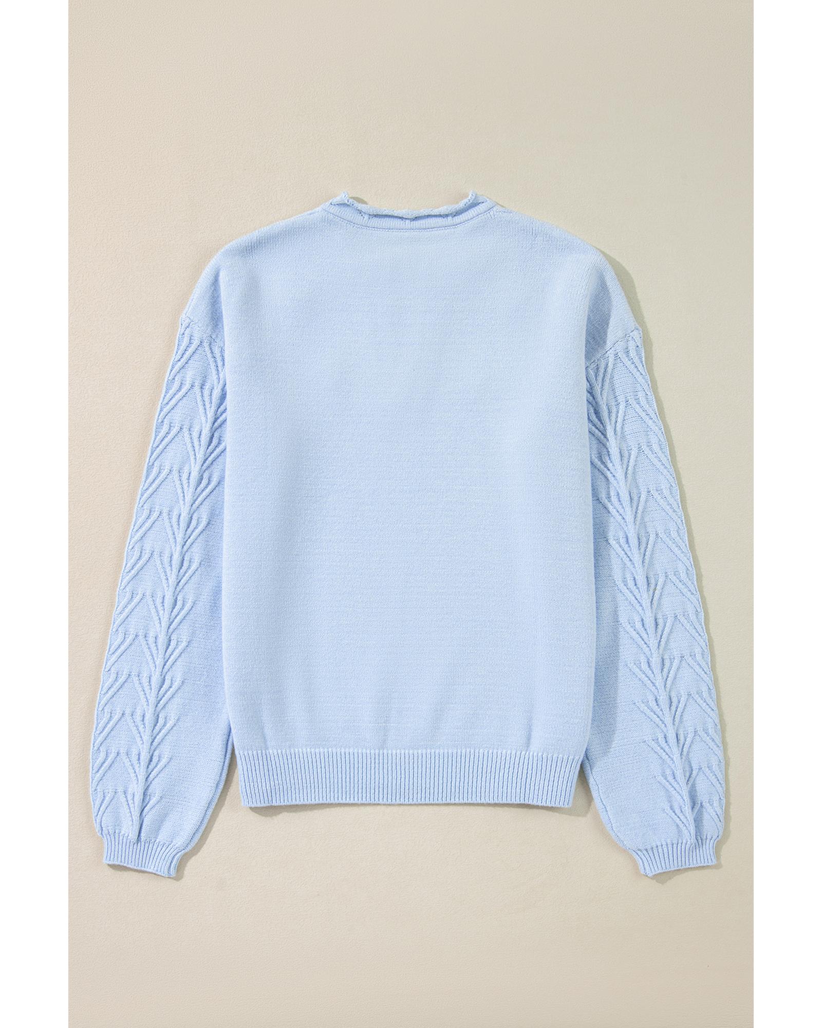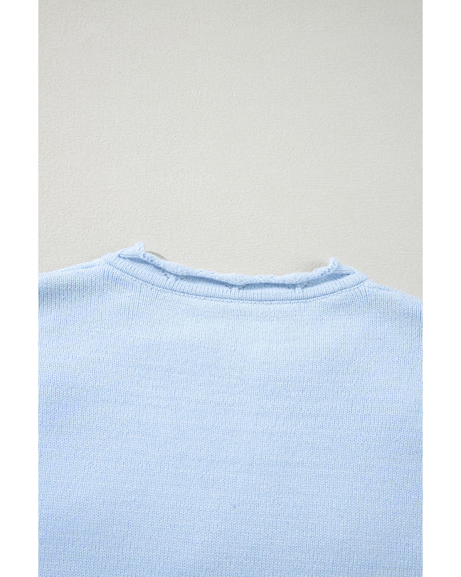 Beau Blue Flower Detail Knitted Notched Neck Sweater – 2XL