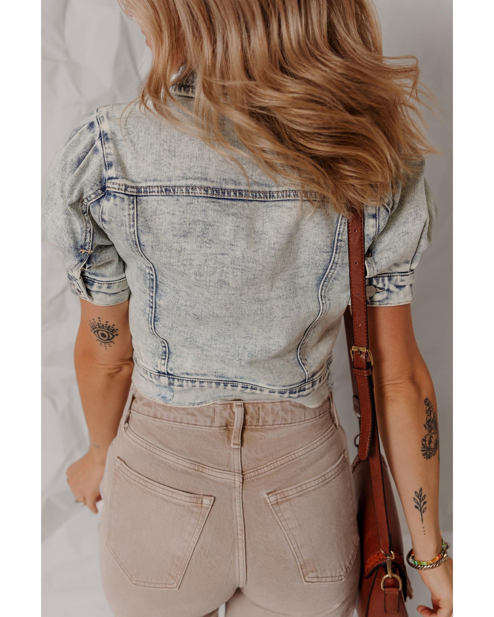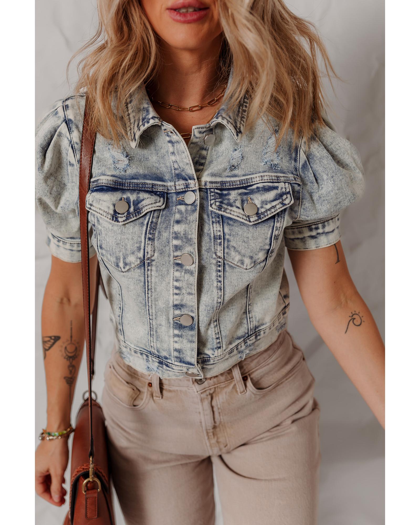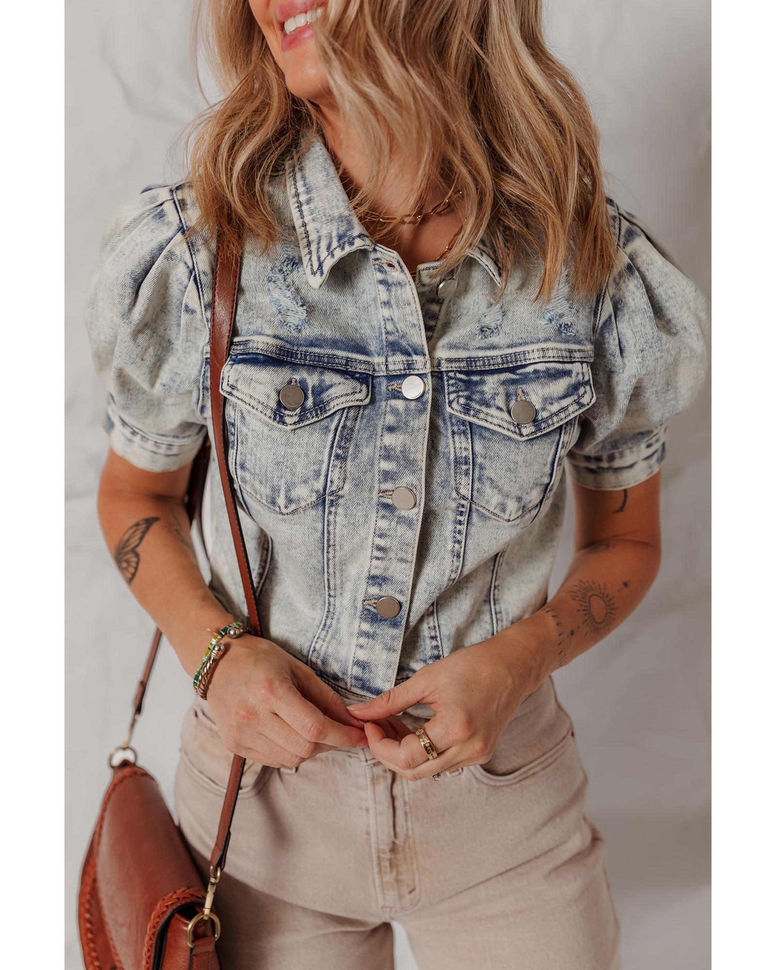 Beau Blue Light Wash Buttoned Chest Pocket Puff Sleeve Denim Jacket – XL