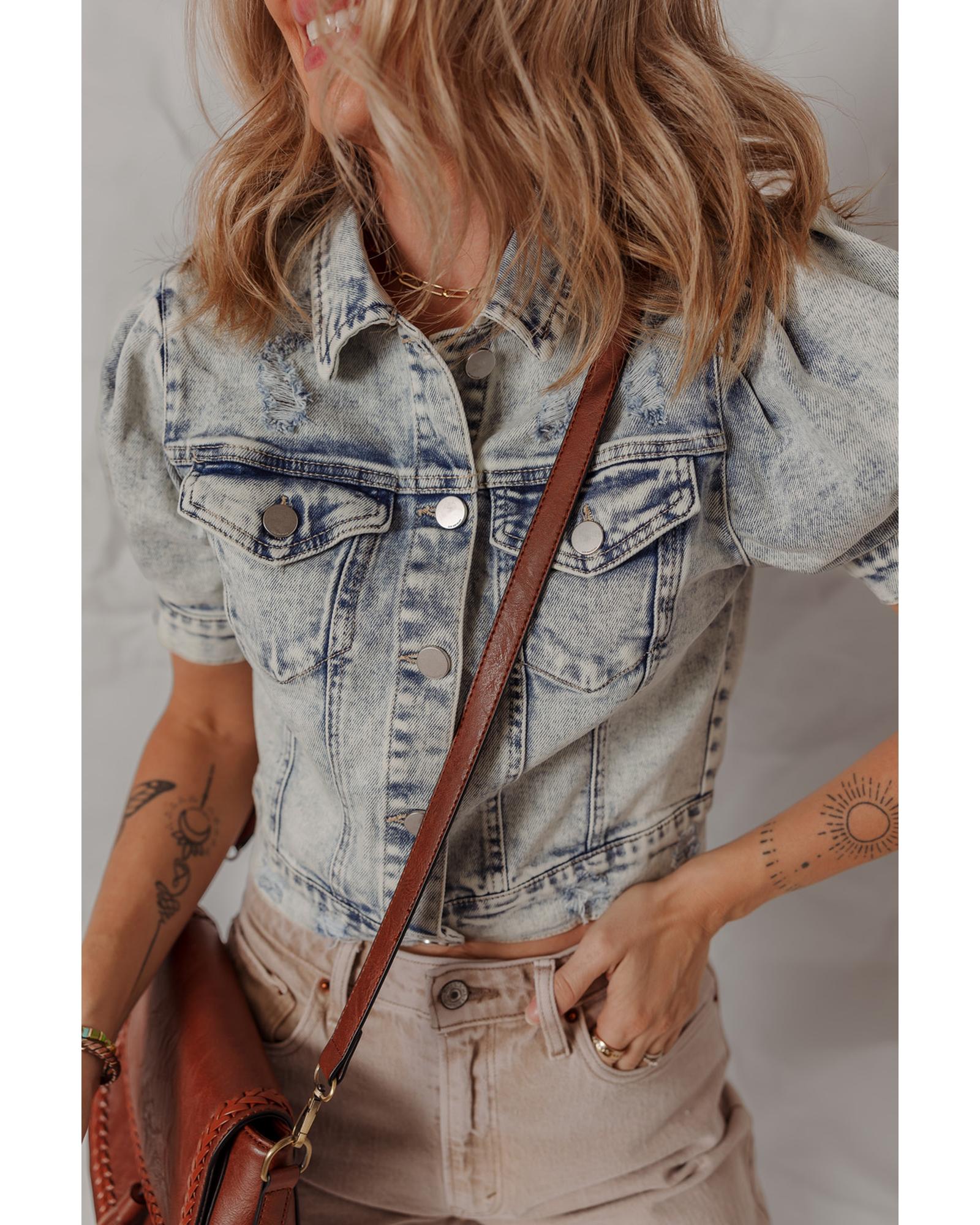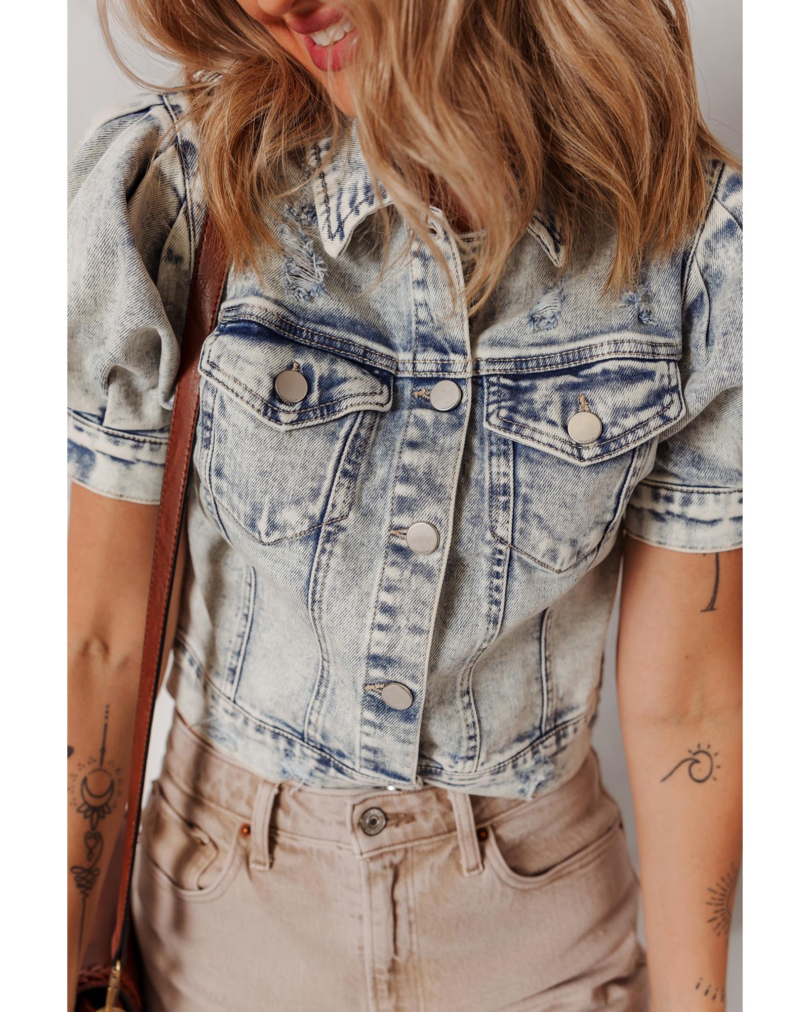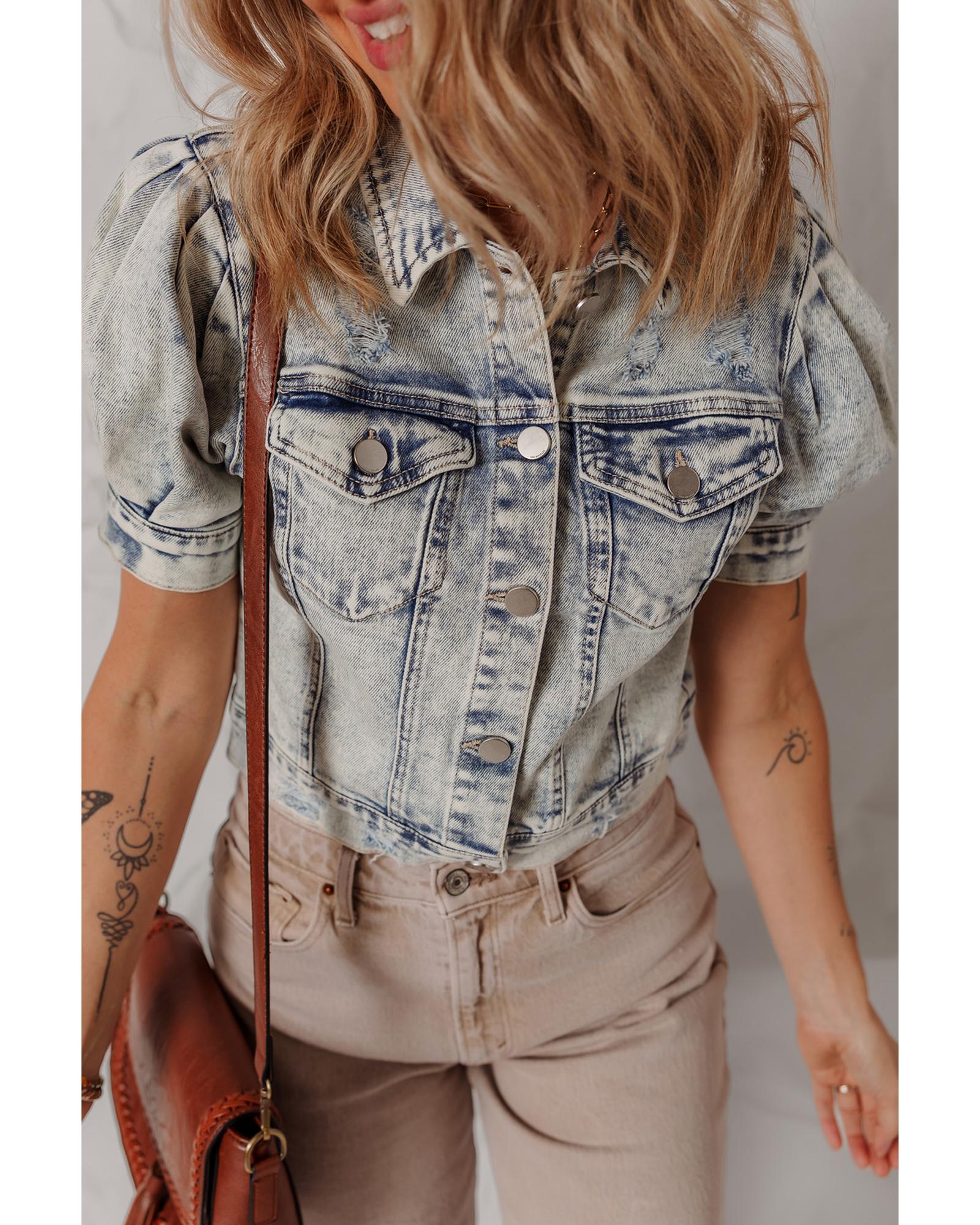 Beau Blue Light Wash Buttoned Chest Pocket Puff Sleeve Denim Jacket – XL