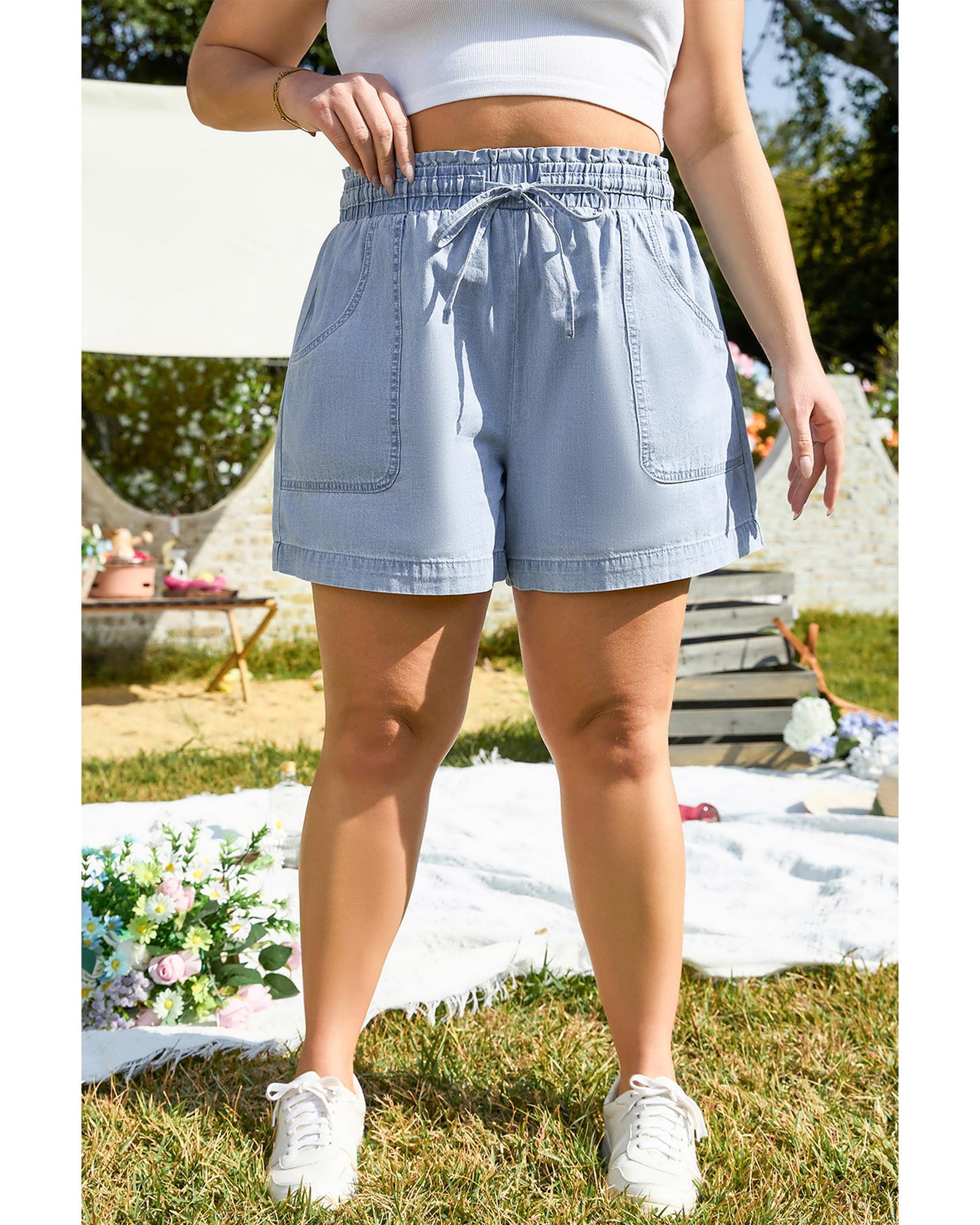 Beau Blue Pocketed Drawstring High Waist Plus Size Denim Shorts – 3X